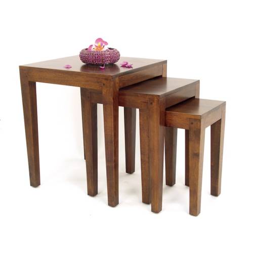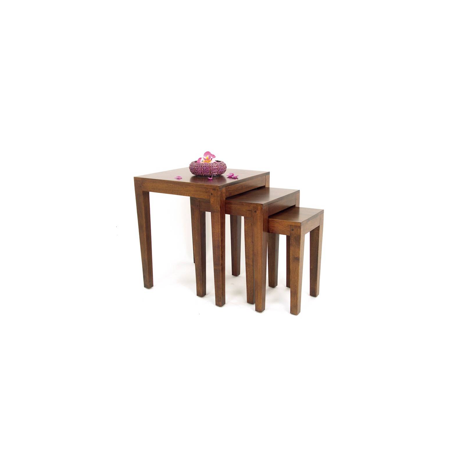 Charmant set de sellettes gigognes qui, de part leur modularité, vous donneront la possibilité de les regrouper ou de les utiliser séparément. Parfaites pour convenir à un intérieur moderne ou plus classique, ces sellettes se distinguent par la simplicité de leurs formes avec leurs pieds fuselés. Elles sont composées entièrement d'hévéa massif, un bois exotique à la couleur claire qui leur permet d'être facilement teintées selon la finition de votre choix. Ce set est ici présenté en finition Chêne Foncé Verni, qui possède une couleur chaude avec un vernis pour plus de brillant.