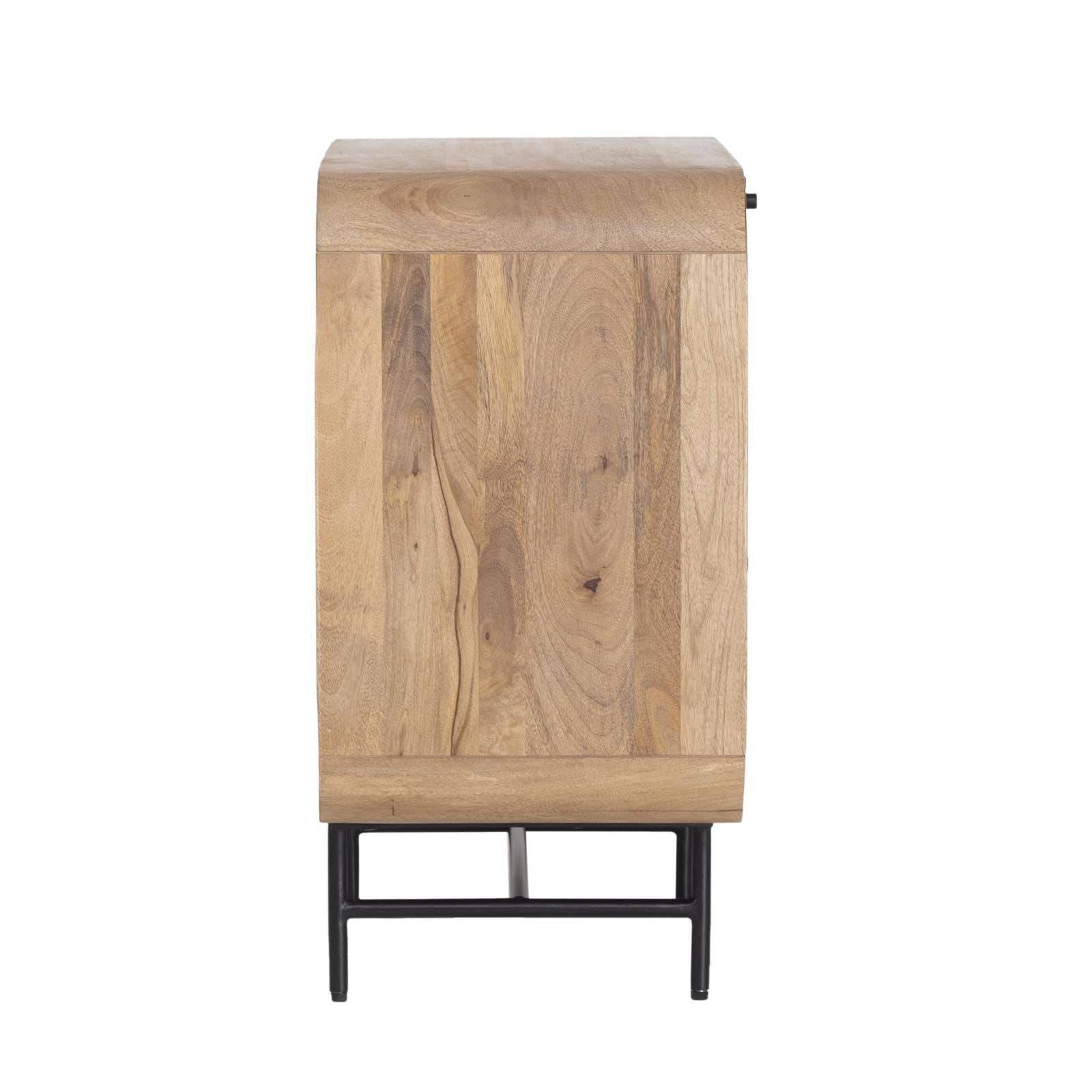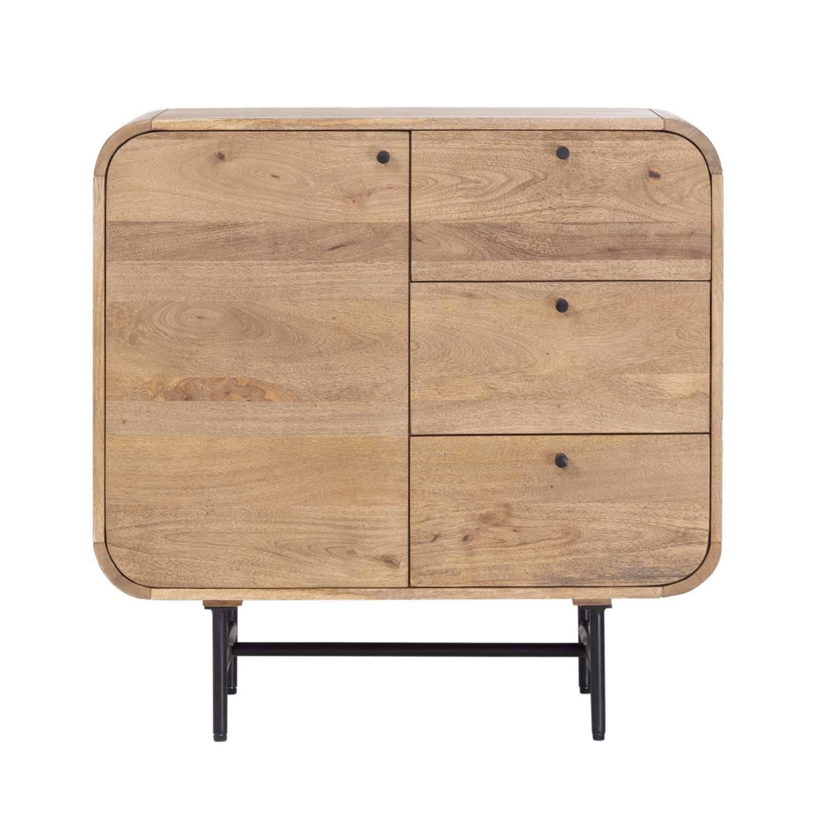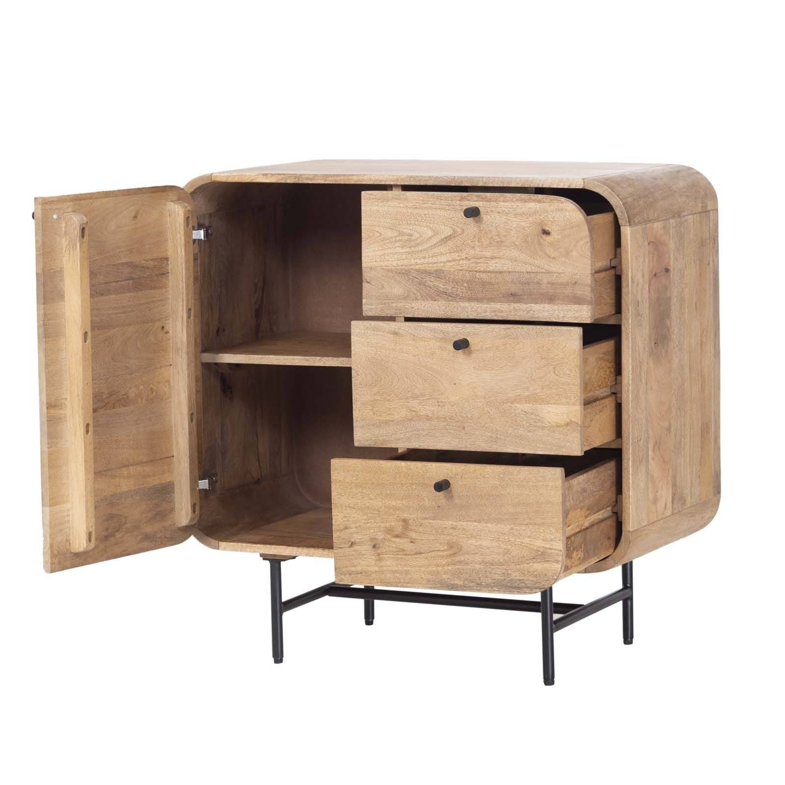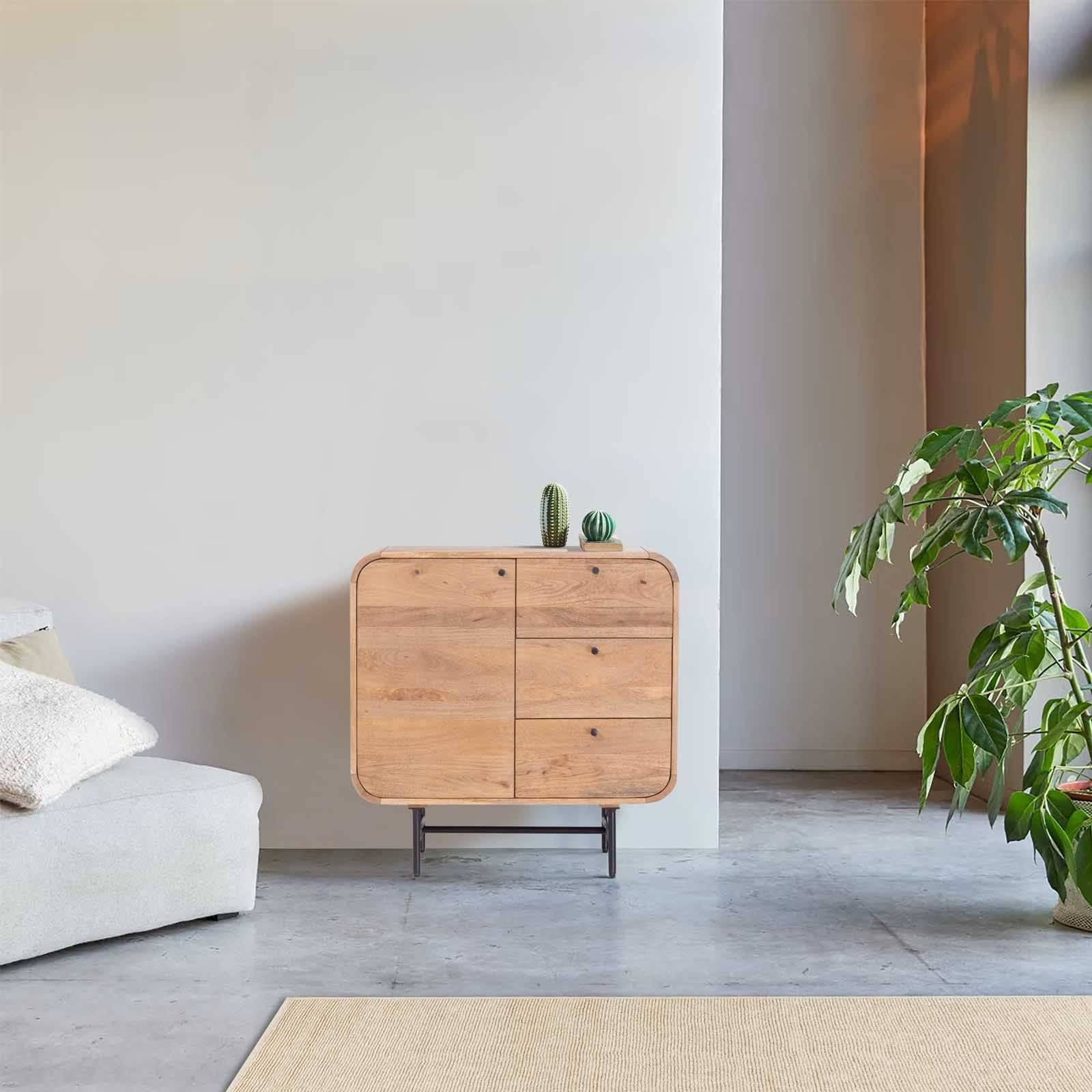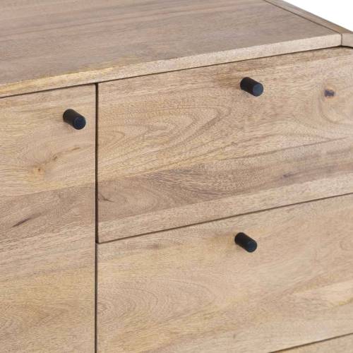Améliorez votre espace de vie avec le Buffet Moderne en Bois de Manguier avec 1 Porte et 3 Tiroirs de la Collection Rondo. Cette pièce élégante et contemporaine combine fonctionnalité et design minimaliste, en faisant un ajout parfait à toute maison moderne. Fabriqué en bois de manguier de haute qualité, ce buffet présente une finition naturelle qui met en valeur les motifs uniques du grain et les tons chauds, ajoutant une touche d'élégance organique à votre décor.