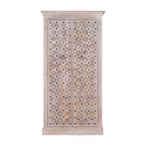 Craquez pour cette armoire exotique au design venu d'ailleurs. En manguier massif de couleur claire elle vous transportera dans les décors du Taj Mahal.