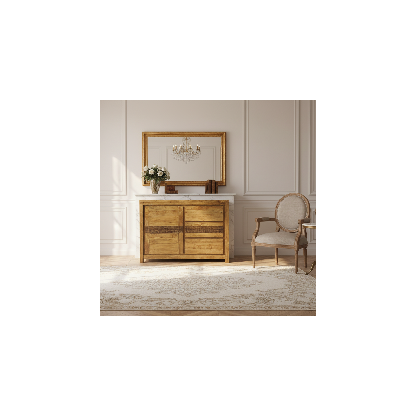 Idéal dans une salle à manger, un couloir ou un salon, ce buffet allie parfaitement savoir-faire artisanal et utilité moderne. Sa conception compacte convient parfaitement aux espaces urbains, tandis que ses matériaux nobles en font une pièce durable et intemporelle qui s’adaptera à tous les styles d’intérieur.