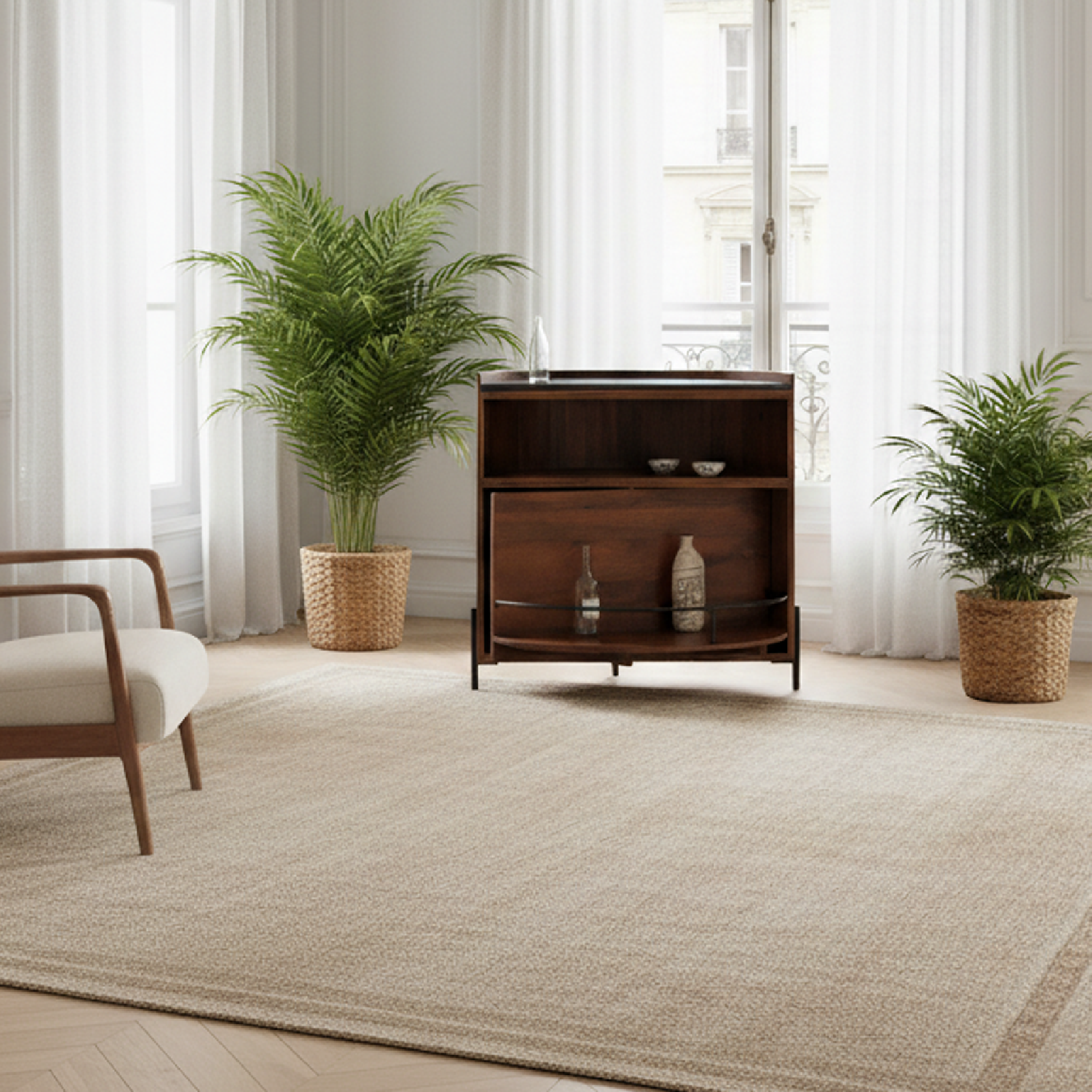 Plongez dans l'élégance raffinée du bar demi-lune conçu à partir d'acacia massif, il offre deux espaces de rangement astucieusement intégrés.