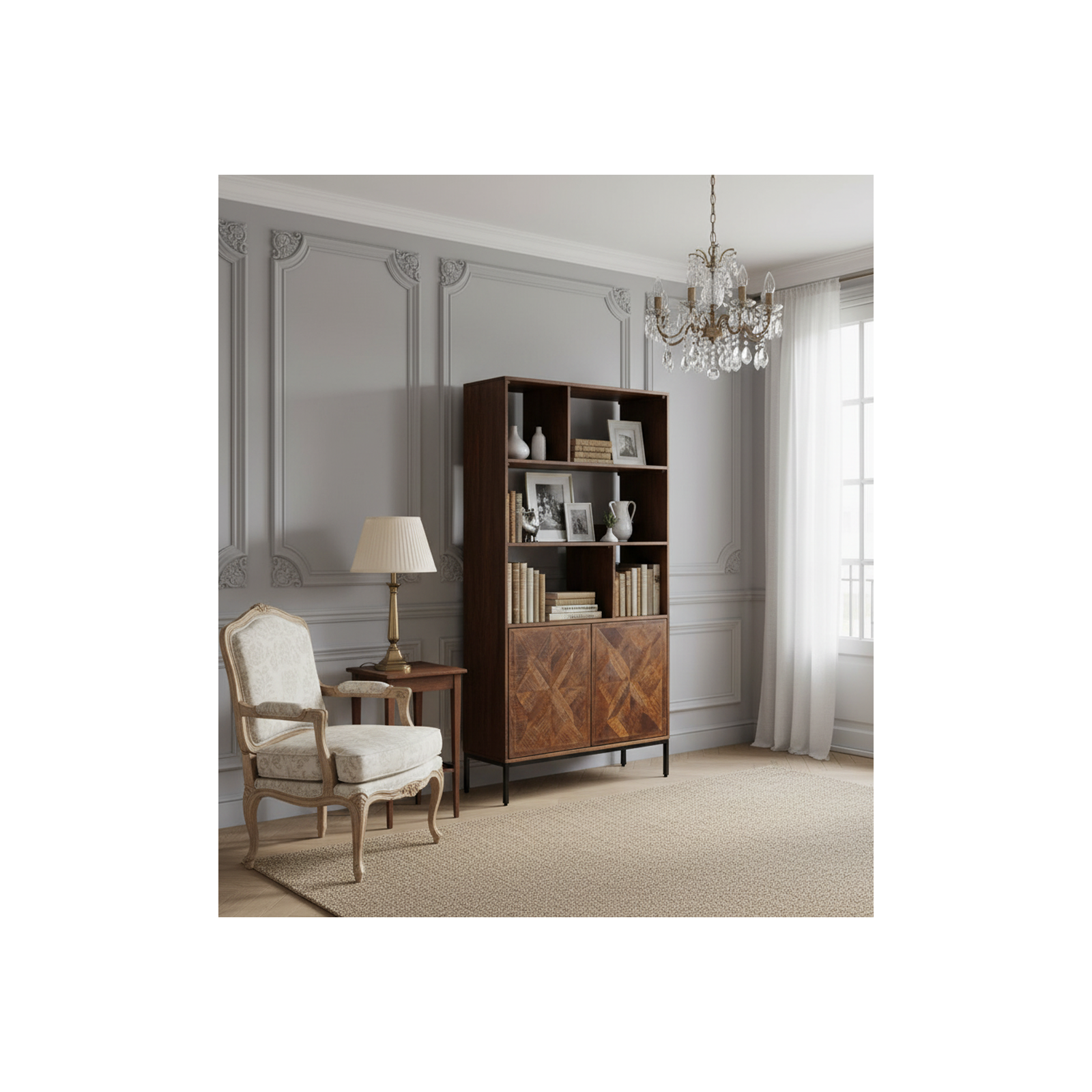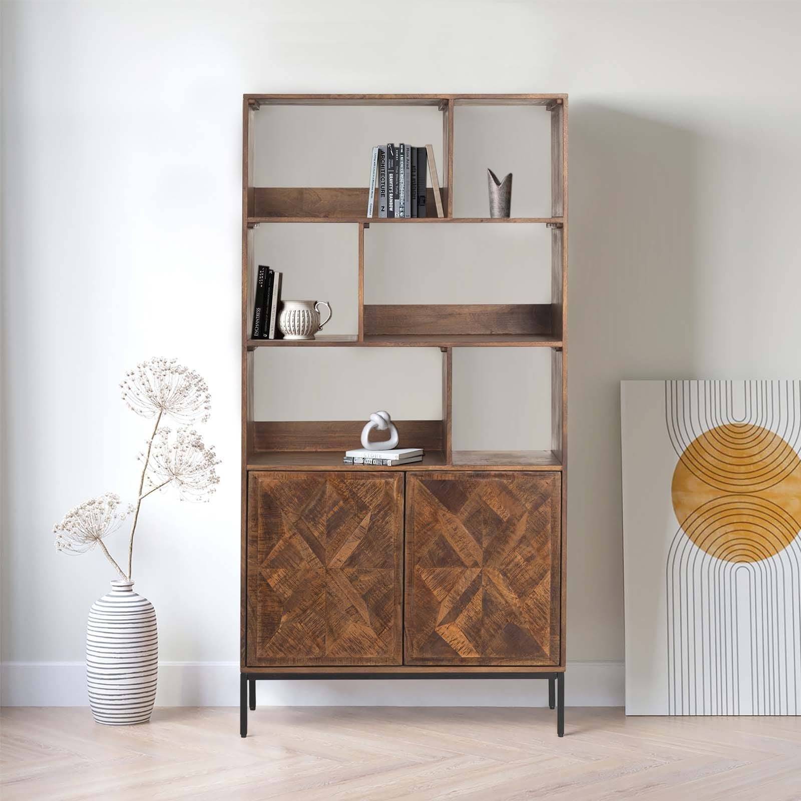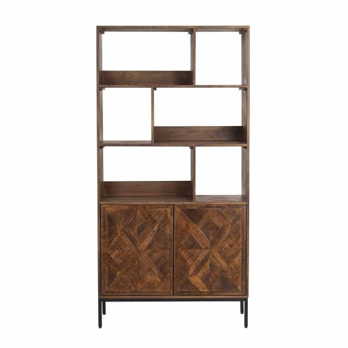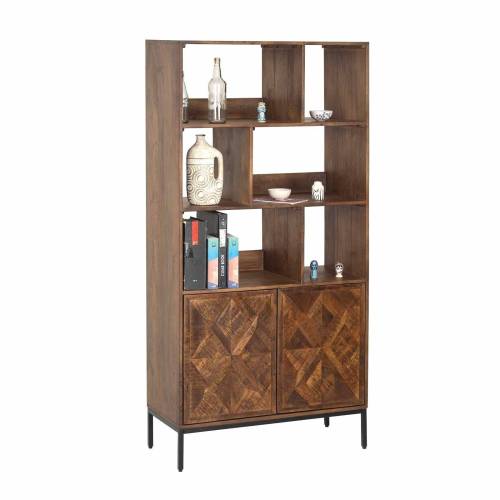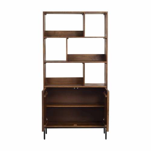 Découvrez l'harmonie entre fonctionnalité et esthétique avec la bibliothèque 2 portes 6 niches qui allie la robustesse du manguier à l'élégance du métal.