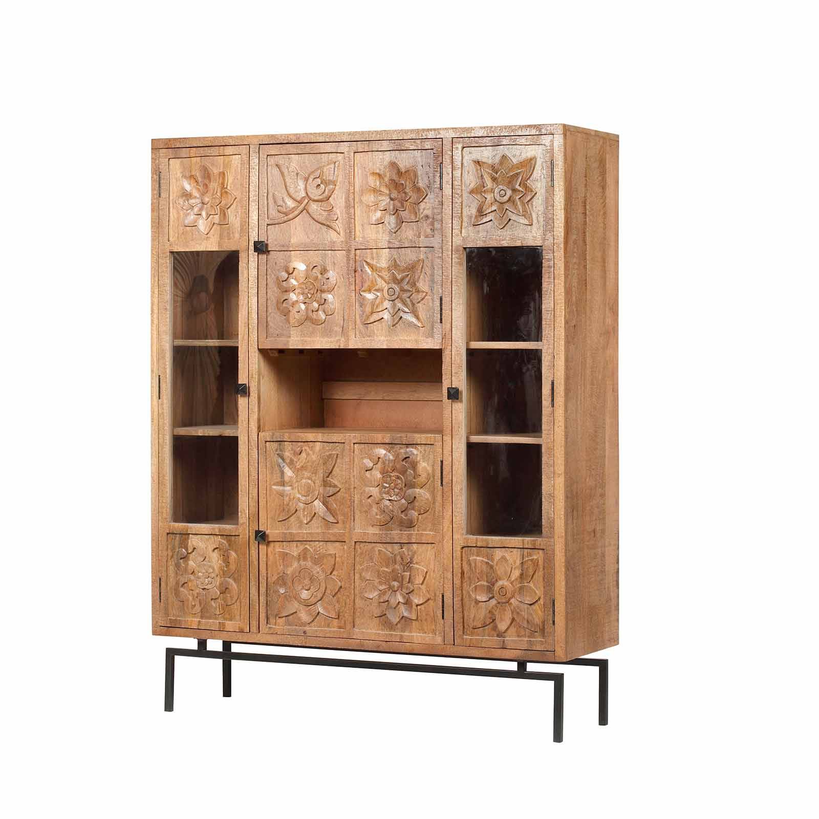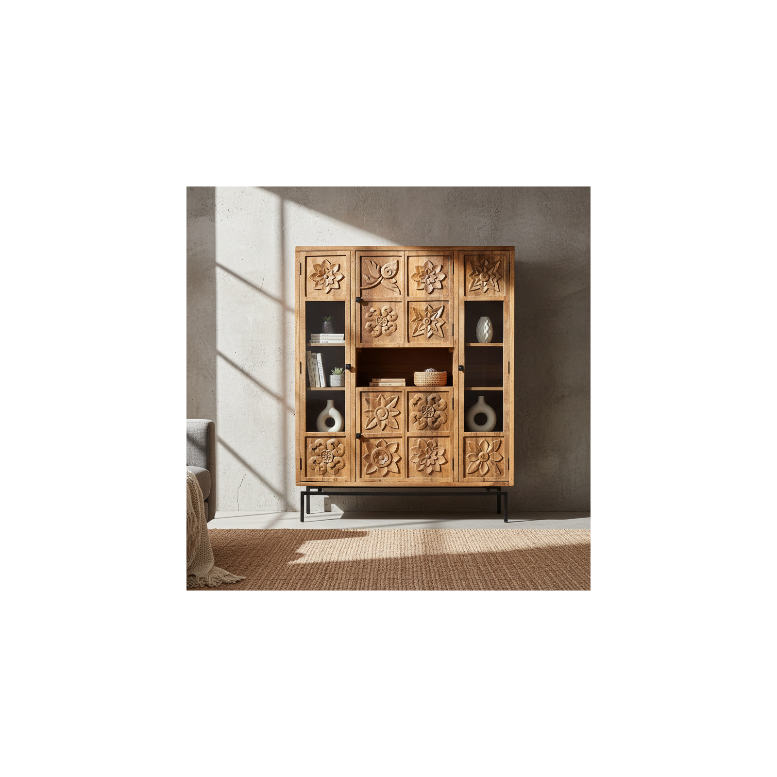 Craquez pour l'élégance intemporelle et l'artisanat méticuleux avec la bibliothèque 4 portes sculptée à la main avec des motifs floraux uniques.