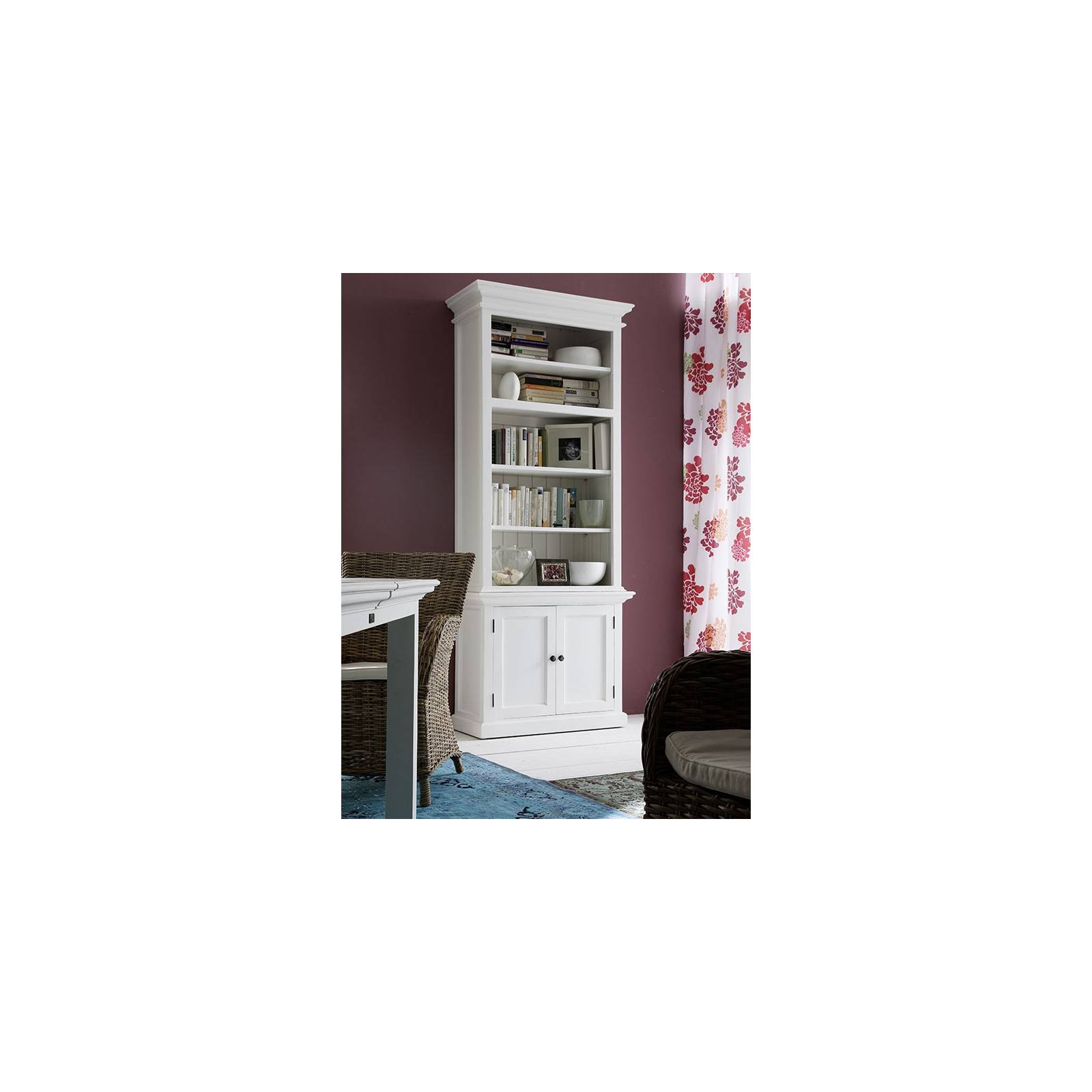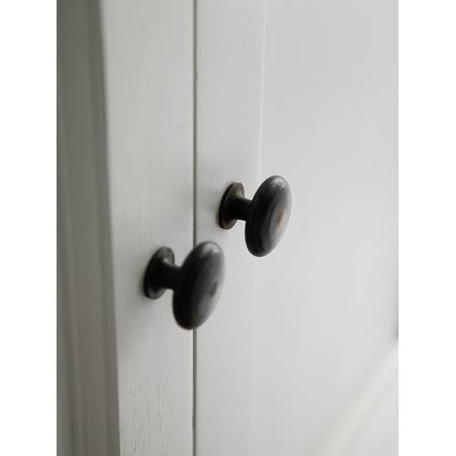 Très beau petit buffet deux corps tout en finesse avec sa silhouette élancée. Sa couleur blanche illuminera votre salle de repas et lui permet de mettre en valeur les objets que vous déposerez sur ses étagères. Le bois qui compose ce meuble est une essence exotique provenant d'Indonésie, de l'acajou massif. Fabriqué de façon artisanale à partir de bois éco-certifié, ce buffet est caractérisé par un aspect vieilli au niveau de ses arrêtes (finition antique).