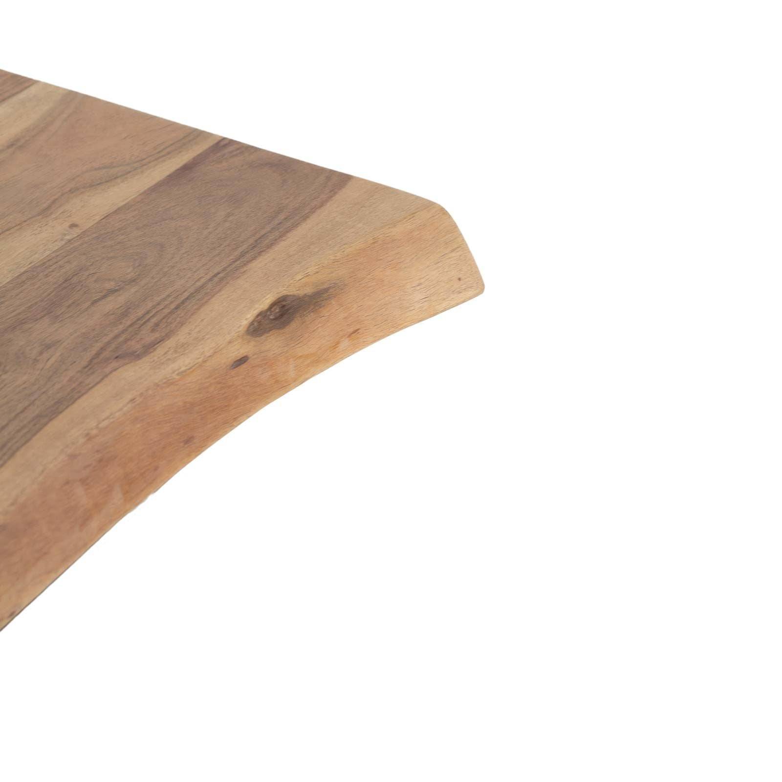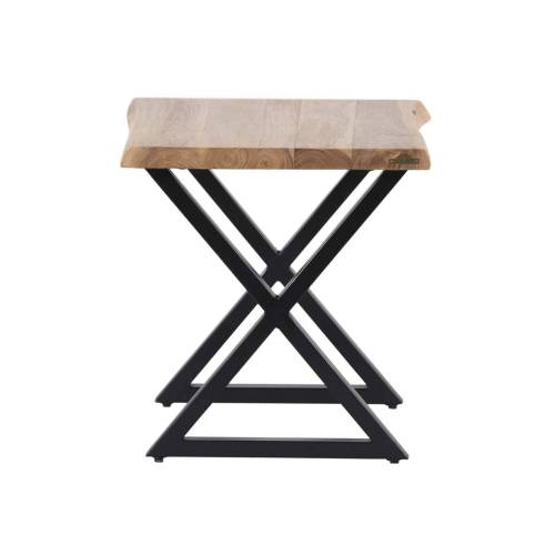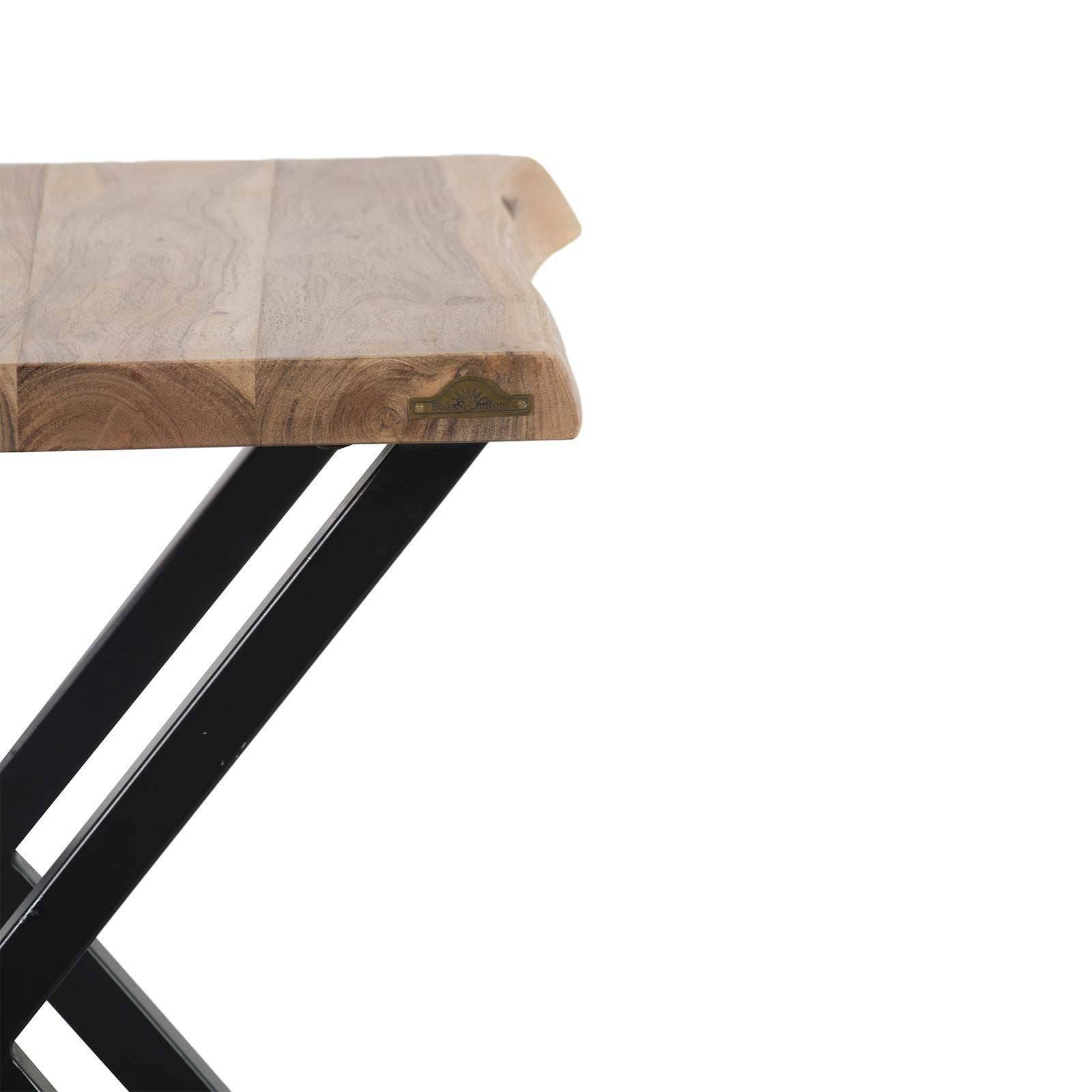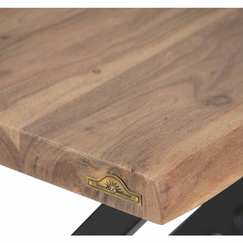 Le piétement en acier industriel noir confère une robustesse et une esthétique audacieuse au bout de canapé, créant un contraste saisissant avec la tonalité naturelle du bois d'acacia. Ce mariage harmonieux entre l'aspect organique du bois et la solidité industrielle de l'acier confère à ce meuble une polyvalence qui s'adapte aussi bien à des intérieurs contemporains qu'à des styles plus traditionnels.