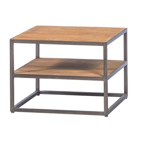 Inutile de les séparer ! Le bois et le métal se retrouvent une fois encore dans ce bout de canapé carré et le duo fonctionne à merveille. Avec un dosage parfait et équilibré, la structure en fer forgé reçoit deux plateaux en teck recyclé et propose un ensemble sobre et léger. Parfaite pour votre intérieur type loft new-yorkais, cette table de style industriel complétera parfaitement votre mobilier au design actuel et toujours fonctionnel.