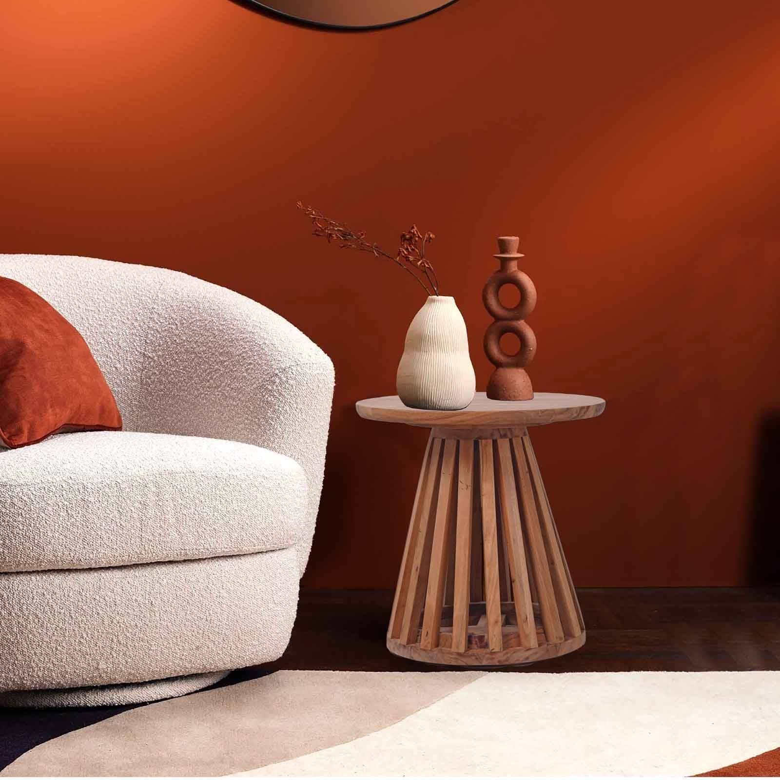 Découvrez l'élégance naturelle du bout de canapé rond bois conçu à partir de bois d'acacia massif de qualité, il incarne la beauté chic du bois naturel.