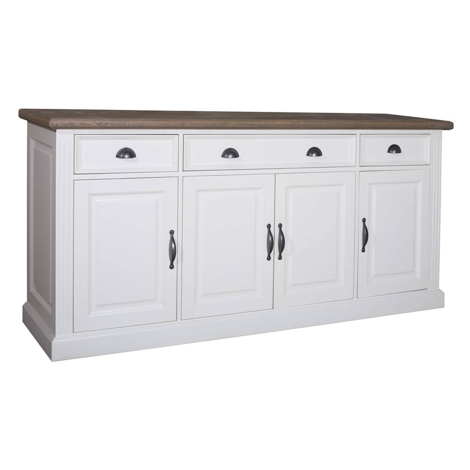 Nostalgique des intérieurs à l'esprit maison de campagne ou cottage, ce buffet bas en pin et en chêne massif sonne comme une évidence. Sa robe blanche, coiffée d'un plateau en chêne de couleur miel, est une mise en ambiance immédiate des intérieurs chics et romantiques. De grande taille, ce meuble sera le compagnon idéal de votre art de vivre où règne une ambiance familiale et chaleureuse. Installé dans une grande cuisine ou dans une salle à manger, il accueillera, derrière ses quatre portes et dans ses trois larges tiroirs, tout ce qui fait écho à l'art de la table.