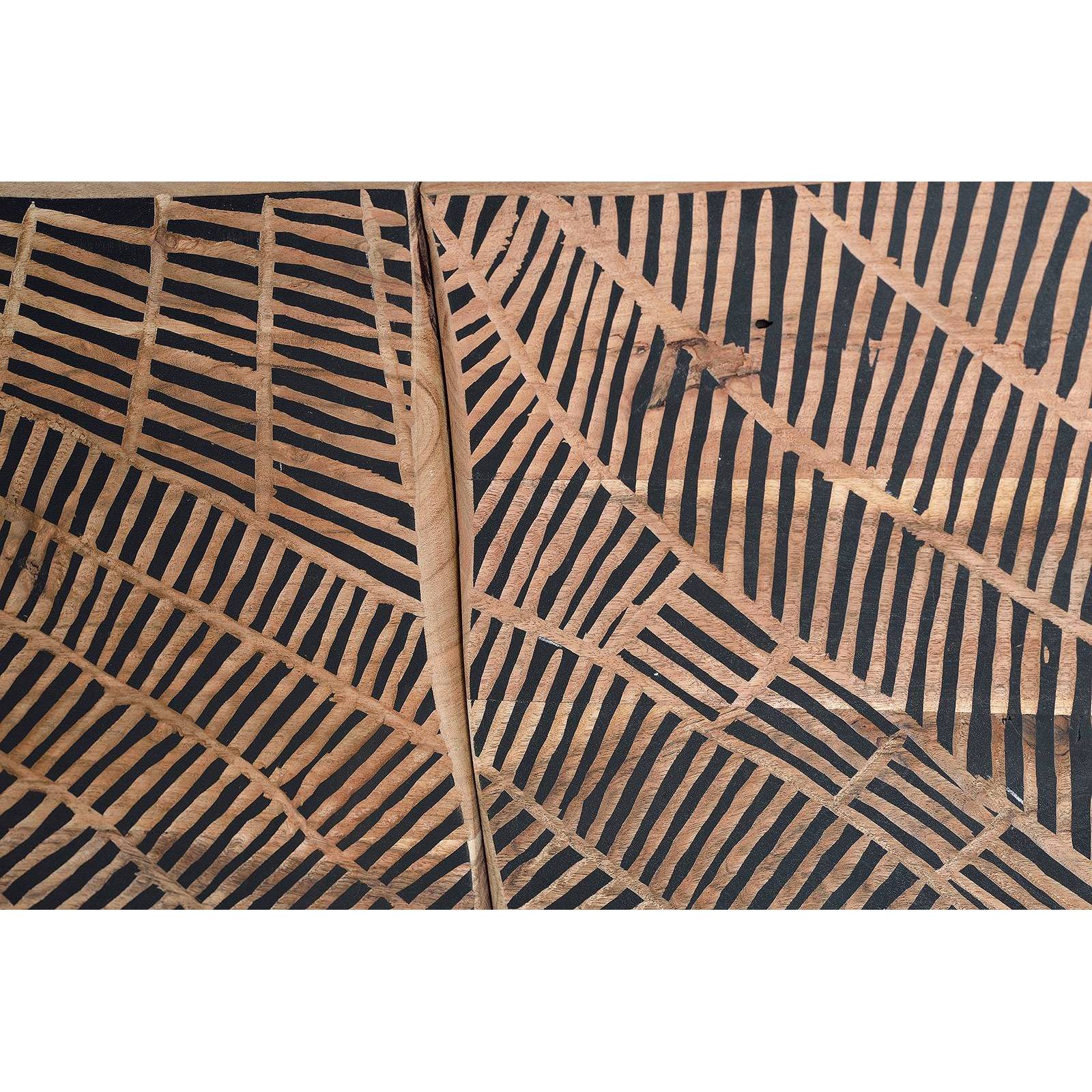 Ce buffet 4 portes en acacia massif est un excellent meuble de rangement. Sa façade sculptée à la main en fait un meuble déco unique pour votre séjour.