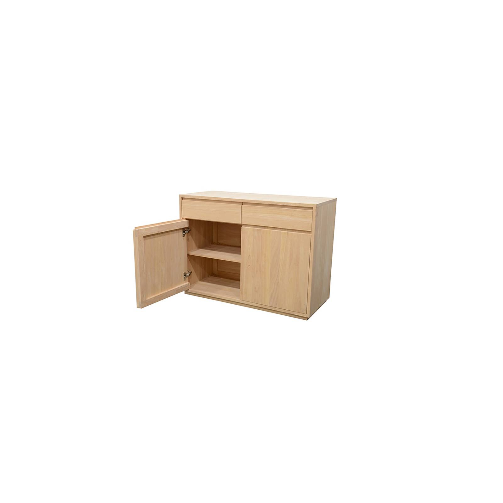 Indispensable à l'organisation de votre maison, ce petit buffet en bois exotique complétera utilement le mobilier de votre salle à manger. Ses lignes épurées, inspirées du design minimaliste ,dessinent deux portes et deux tiroirs qui se détachent en toute discrétion de l'ossature principale. À l'intérieur, deux niveaux de rangement vous permettront de déposer une partie de votre vaisselle, tandis que les tiroirs accueillent couverts et sets de table. Sur son plateau lumineux, vous déposerez une décoration légère et soignée, juste ce qu'il faut pour s'harmoniser avec votre décor simple et convivial.