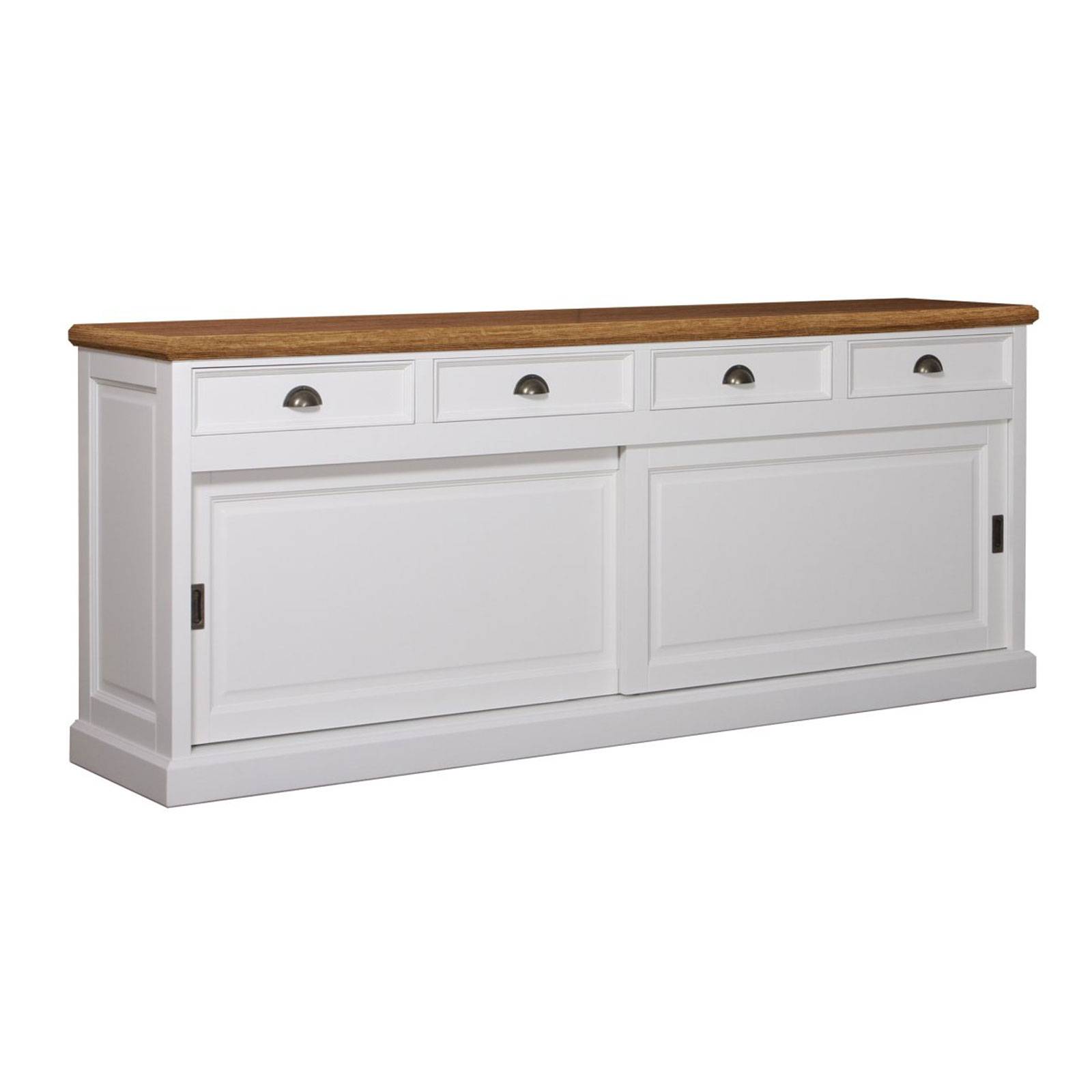 Élégante et dotée d'un redoutable cachet, cette grande enfilade conviviale vous transporte immédiatement dans les couloirs du temps. Sa patine blanche, rehaussée par la chaleur naturelle du chêne, est une ode au romantisme, une invitation à la douceur de vivre des maisons de campagne chic et cosy. Ciblé pour votre salle à manger, ce grand buffet sera un meuble de rangement parfait pour votre vaisselle, vos couverts et votre linge de table. Son long plateau de 218 cm accueillera volontiers lampe, coupe de fruits de saison, bougies et bibelots qui racontent une histoire.