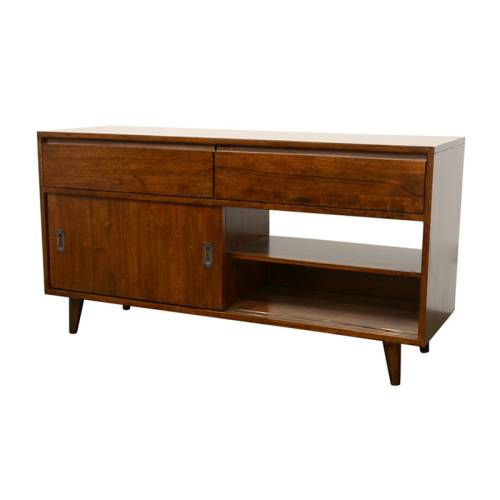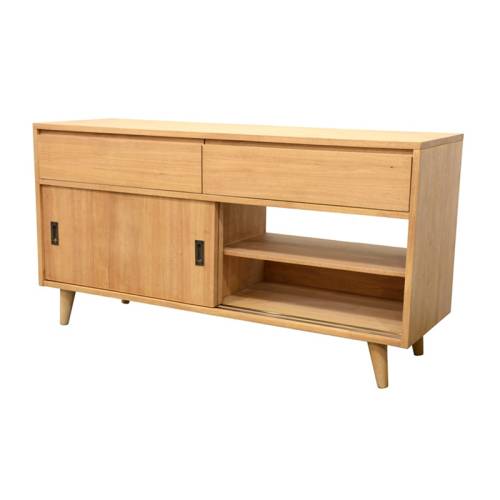 Ce buffet bas Vintage Bergen a une conception originale, le tout dans un style scandinave rétro. Il comporte deux portes coulissantes ainsi que deux tiroirs, le tout dans une structure aux lignes épurées, montée sur de jolis pieds fuselés !