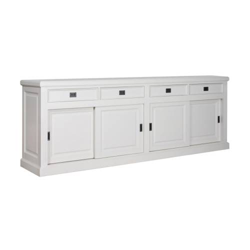 Indémodable, ce grand buffet bas séduit aussi par ses grandes dimensions qui vous permettront une organisation confortable de toutes vos affaires. Particulièrement adapté à votre linge de maison ainsi qu'à votre vaisselle, vous l'apprécierez tout particulièrement dans votre salle à manger. Sa couleur blanche, teintée de romantisme, cède volontiers sa place à d'autres coloris pour que vous puissiez la combiner avec tous les éléments qui l'entourent. Adepte du style Shabby chic, optez pour les poignées coquille en bronze ou en aluminium et pour la "finition antique" à l'aspect vieilli.