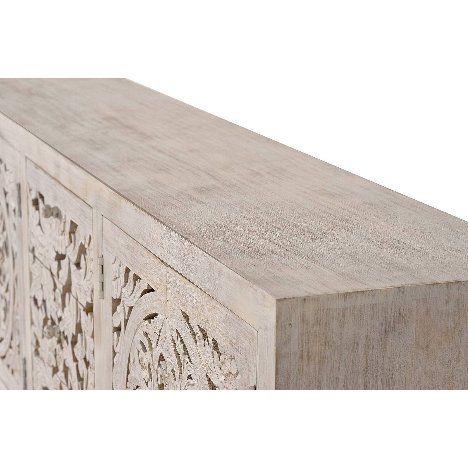 La véritable pièce maîtresse de ce buffet se trouve sur sa face avant, qui est magnifiquement sculptée à la main. Chaque détail minutieux et chaque motif sont soigneusement créés par des artisans habiles, ajoutant une touche d'artisanat et d'originalité à ce meuble. Doté d'un généreux espace de rangement, le buffet bas Myconos vous offre une solution pratique pour organiser et ranger vos articles essentiels. Il apportera une ambiance sophistiquée et une touche de glamour à votre espace. Son design polyvalent s'adapte facilement à différents styles de décoration, qu'ils soient modernes, contemporains ou classiques.