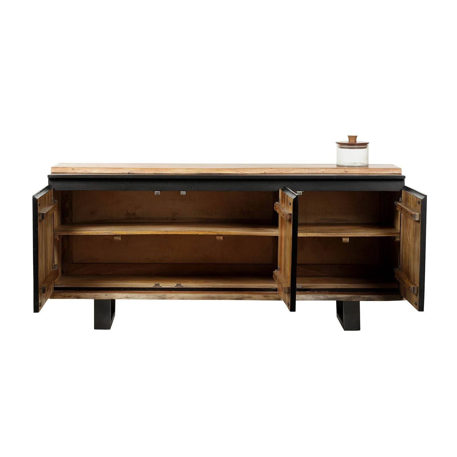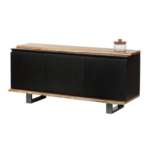 Fabriqué avec soin à partir d'acacia massif, de manguier massif et de métal, et doté de trois portes et de deux étagères, ce buffet offre un espace de rangement généreux pour vos ustensiles de cuisine, vaisselle ou linge de maison. Sa structure en bois massif de manguier assure une durabilité exceptionnelle, tandis que son plateau en acacia massif apporte une touche de naturel et d'authenticité à votre intérieur. Le dos en MDF assure une stabilité supplémentaire, tandis que les pieds en métal livrés démontés ajoutent une touche industrielle moderne.