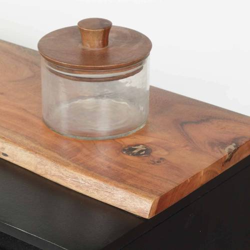 Les portes et la structure en manguier massif offrent à la fois fonctionnalité et style. Peints en noir, ces éléments créent un contraste saisissant avec le plateau en acacia massif au coloris naturel, offrant un équilibre visuel harmonieux. Que ce soit pour votre salle à manger ou votre cuisine, ce buffet bas noir Acacia Black est l'ajout parfait pour rehausser votre décor intérieur avec son design contemporain et ses fonctionnalités pratiques. Offrant à la fois beauté et utilité, ce meuble est sûr de devenir le point central de votre pièce, ajoutant une touche de raffinement à votre maison.