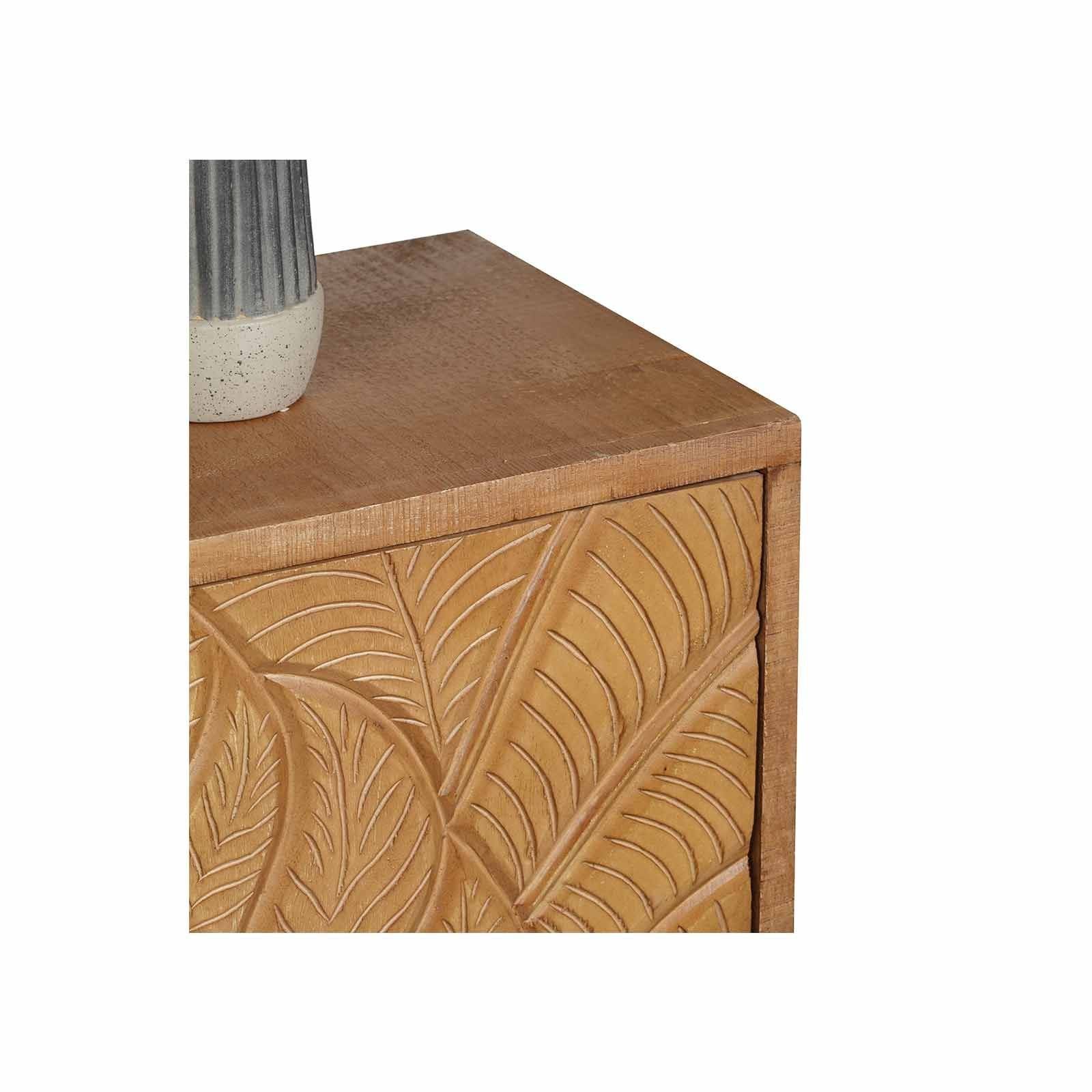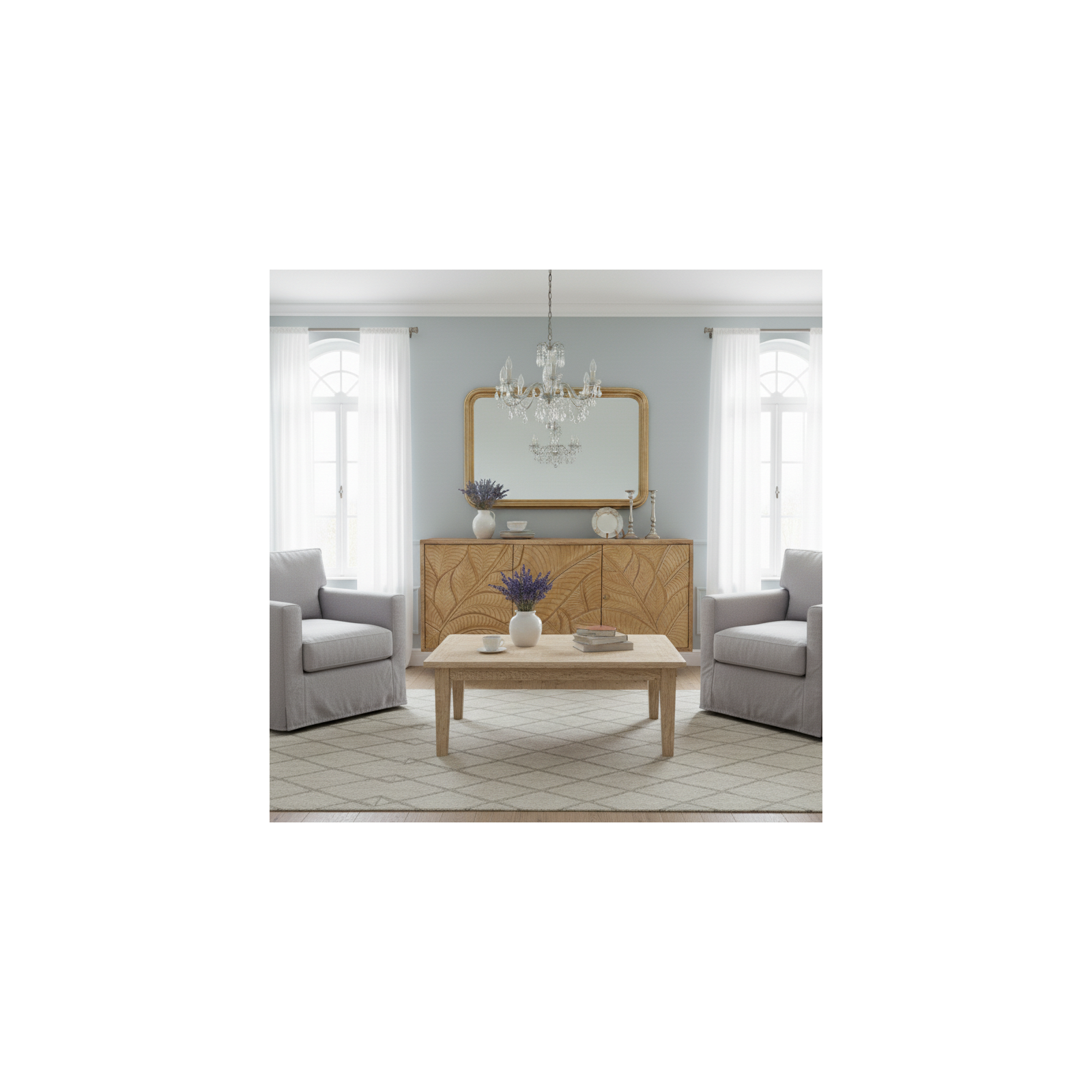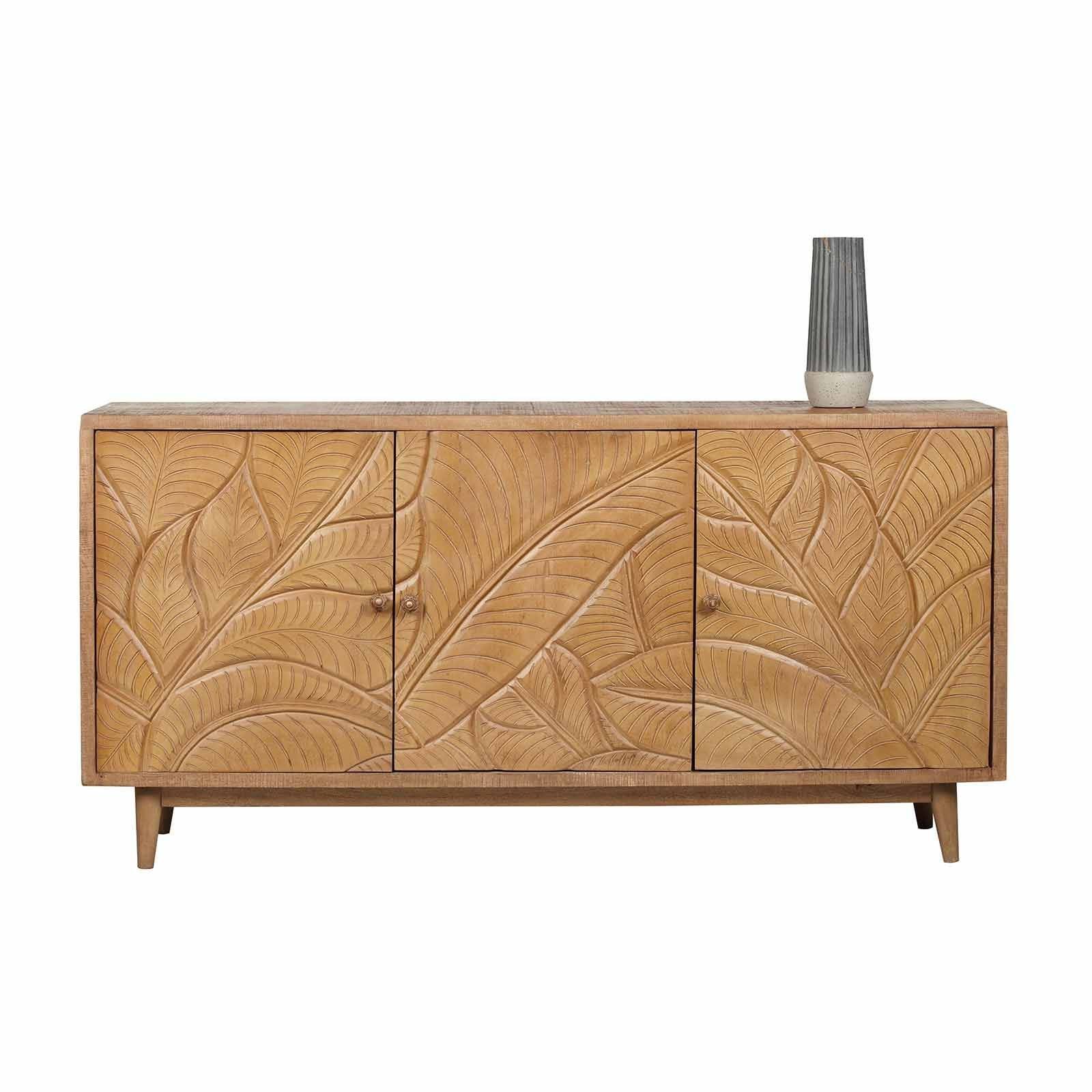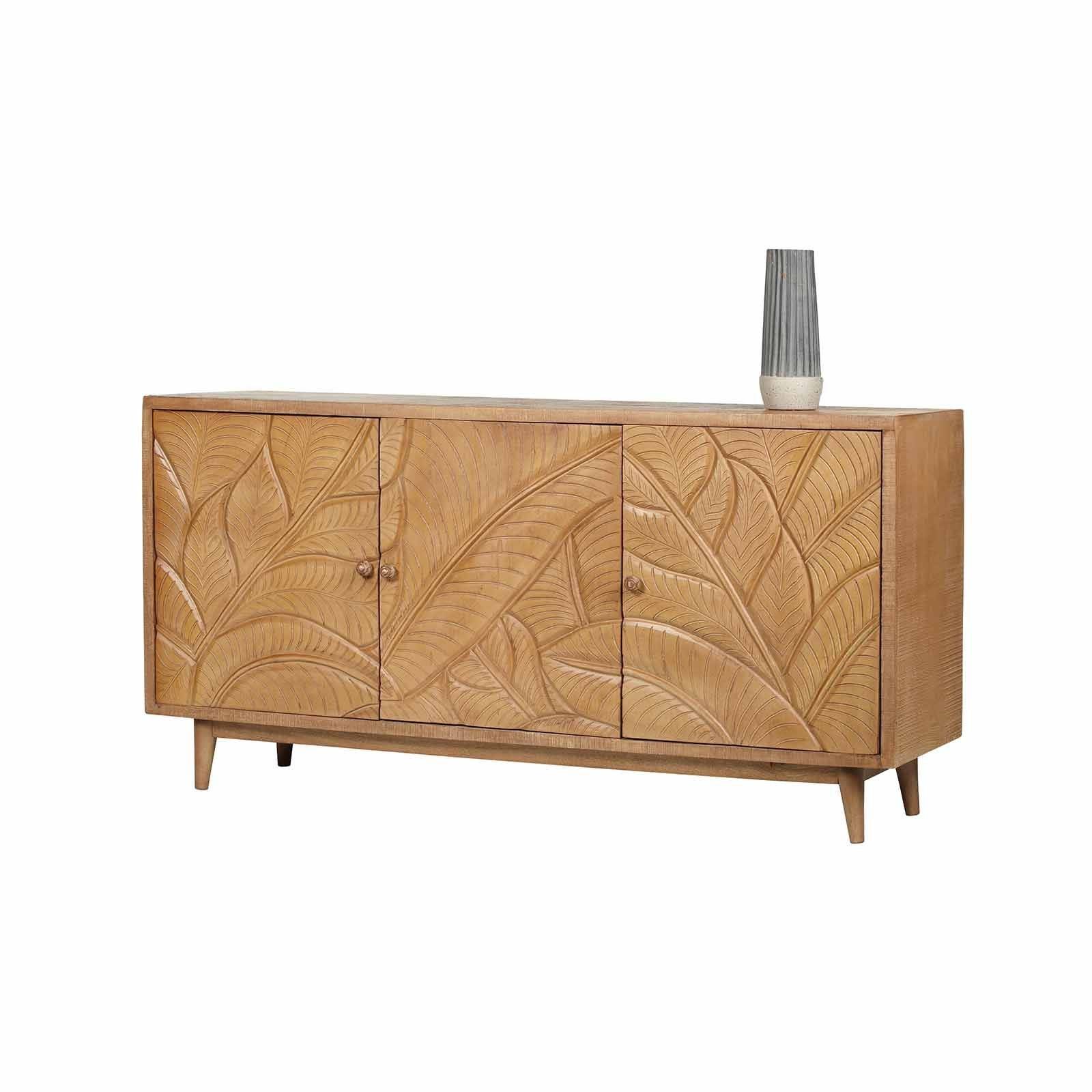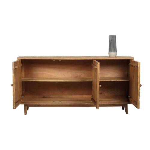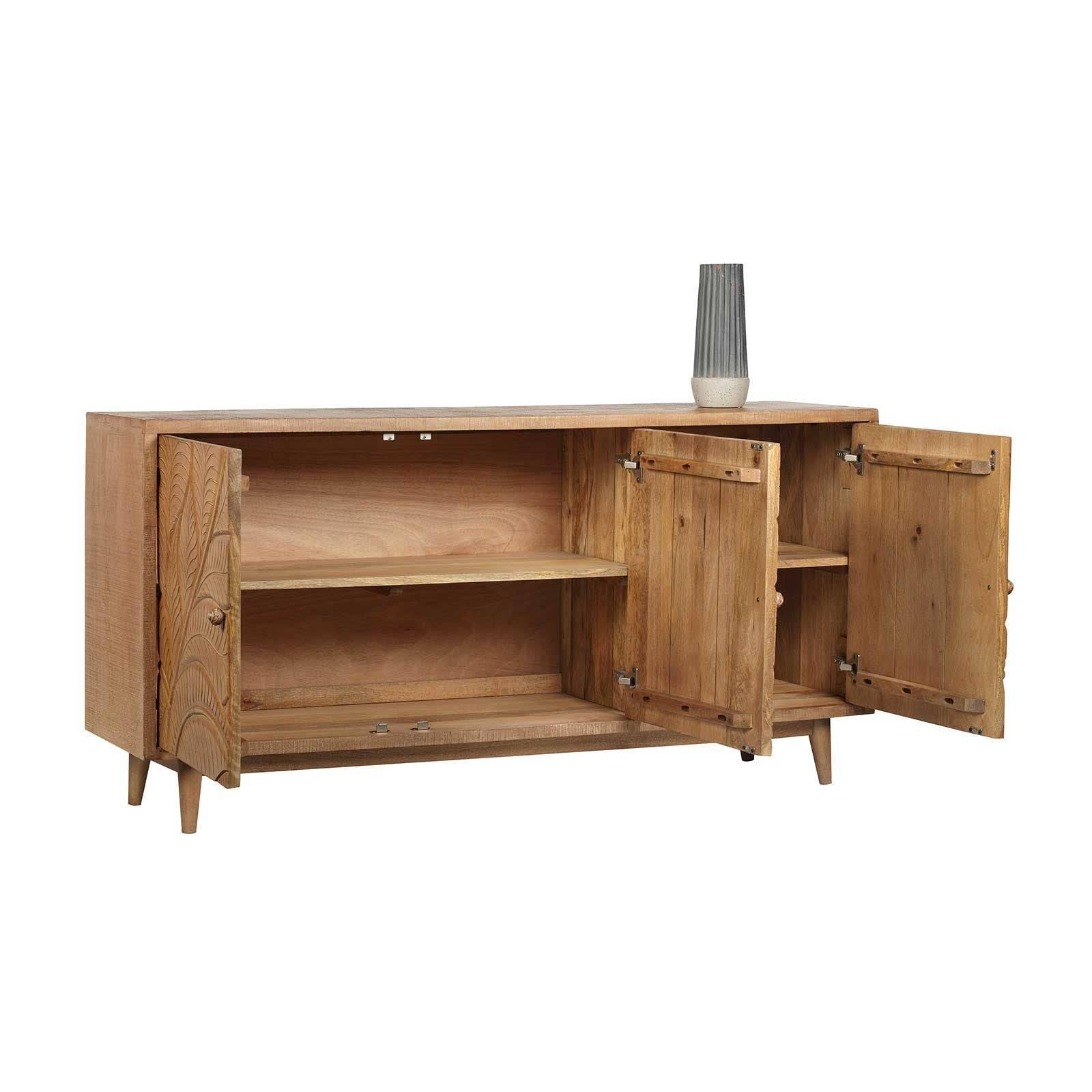 Le buffet bas sculpté 3 portes a un design raffiné. Il offre un espace de rangement généreux et donne une touche de charme naturel à votre intérieur.