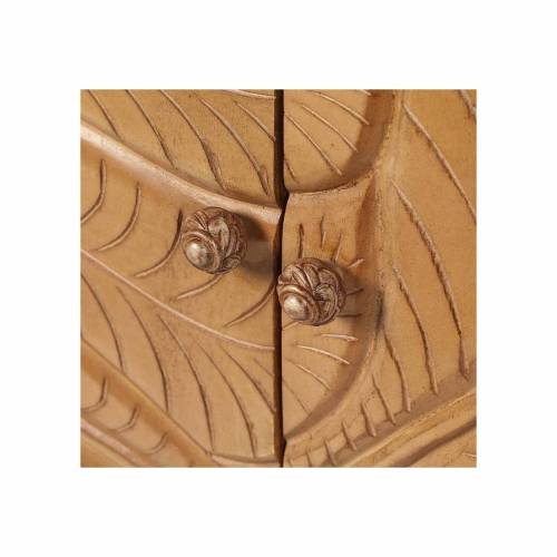 Doté de trois portes en manguier massif, ornées de sculptures artisanales faites à la main, ce buffet est une œuvre d'art en soi. Les détails sculptés représentant des motifs végétaux ajoutent une dimension unique et un caractère distinctif à chaque porte, créant ainsi une pièce de mobilier que vous ne trouverez nul part ailleurs. La structure en manguier massif, assure une solidité et une durabilité à toute épreuve, tandis que le dos en MDF garantit une stabilité structurelle optimale. Les pieds en manguier massif de dimensions 5x3 cm, livrés démontés pour un montage facile, ajoutent une touche de sophistication tout en offrant un soutien solide au buffet.