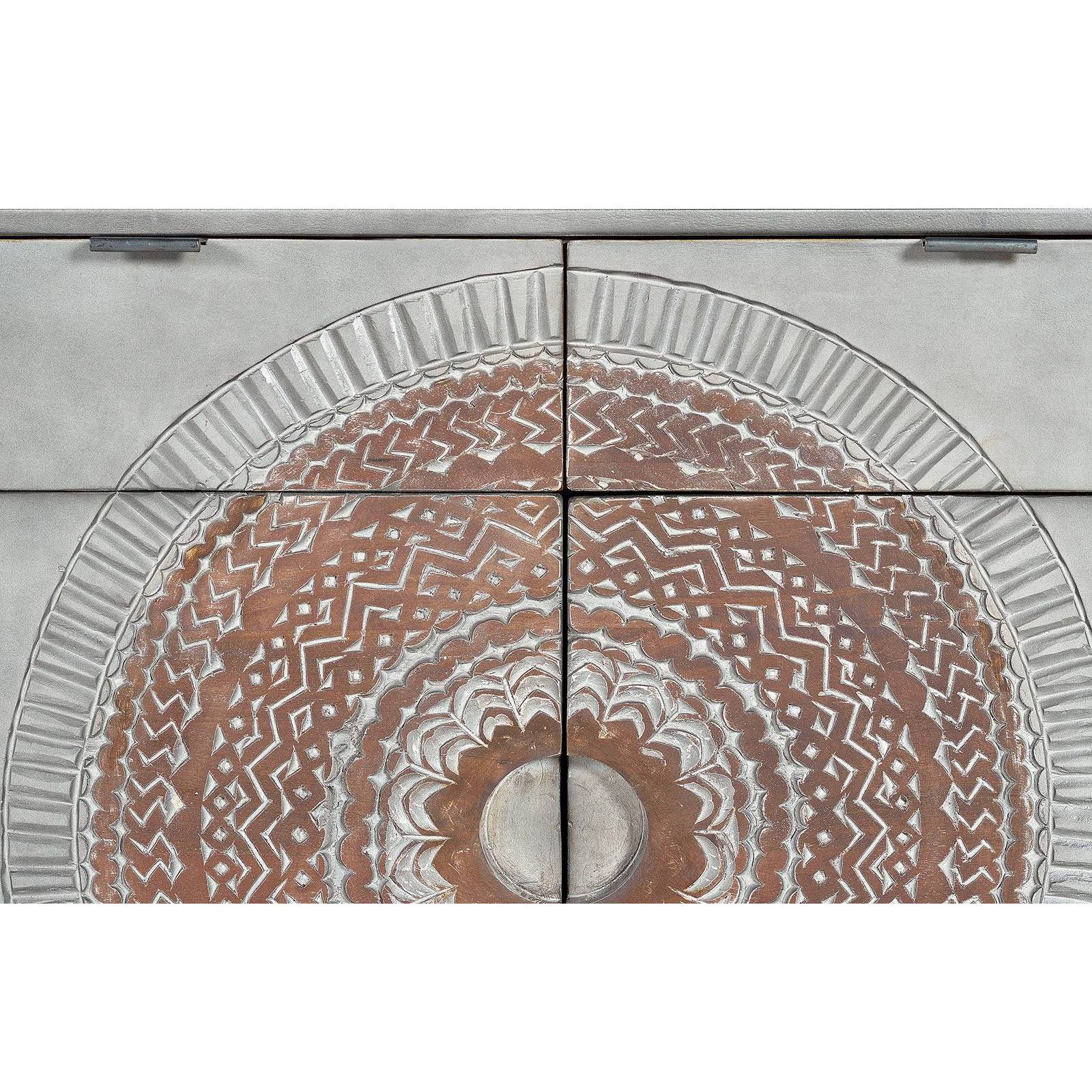 Le buffet bois 2 portes de la collection Manguier Mandala est bien plus qu'un simple meuble de rangement, c'est une œuvre d'art fonctionnelle qui incarne l'élégance et l'exotisme. Fabriqué en manguier massif à la teinte grise délicate, il évoque la qualité artisanale et la beauté naturelle. Sa façade est une toile vivante, sculptée à la main avec des mandalas d'une beauté saisissante, chaque détail témoignant du savoir-faire exceptionnel de l'artisan. Les mandalas, inspirés par la culture hindoue, sont des fenêtres ouvertes sur un monde de symbolisme et de spiritualité. Chaque ligne, chaque courbe, chaque motif raconte une histoire profonde et captivante, transformant ce buffet en une pièce maîtresse de votre décoration intérieure.