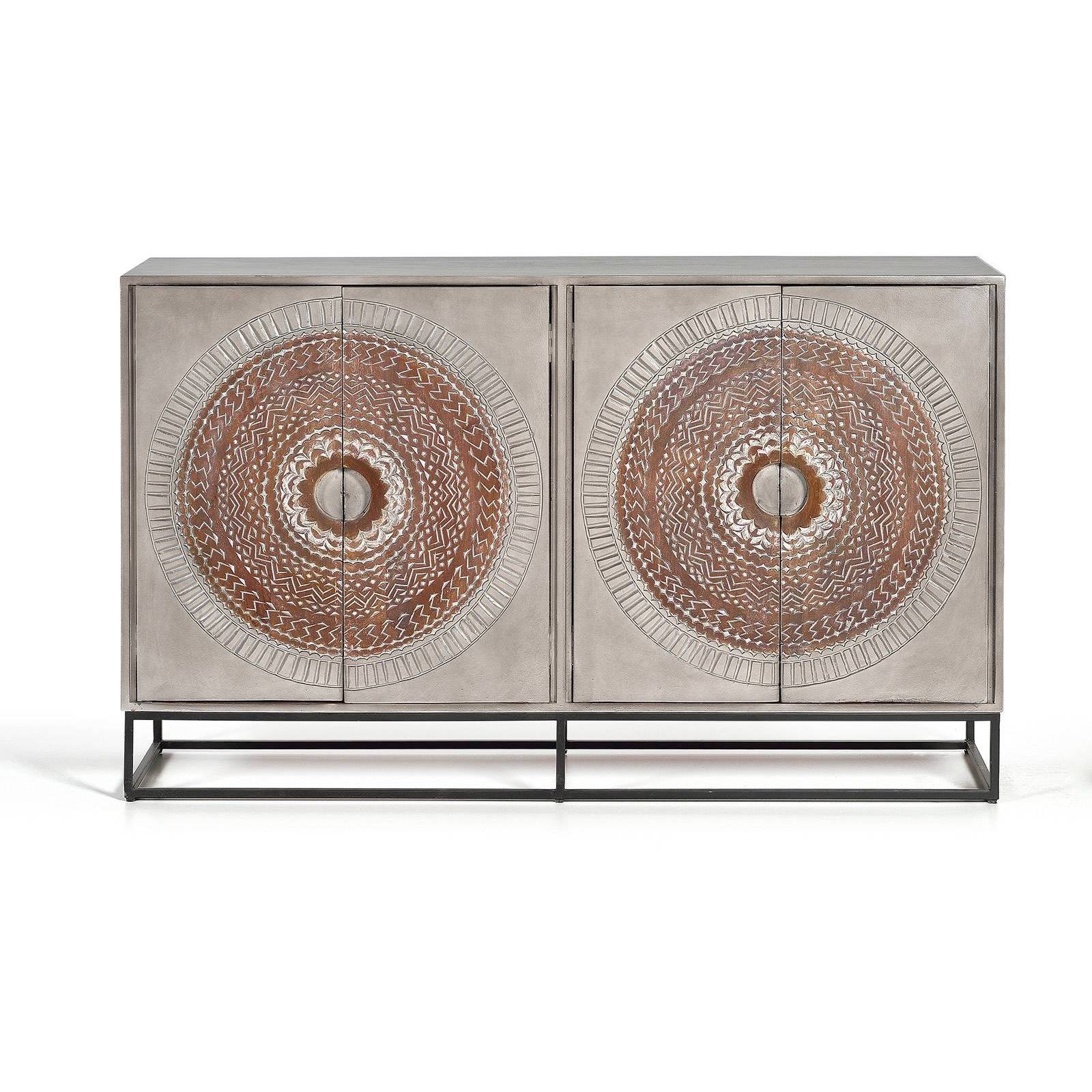 Ce beau buffet 4 portes en manguier massif est un meuble déco unique. Les mandalas sculptés à la main sur sa façade donneront à votre intérieur une ambiance exotique originale.
