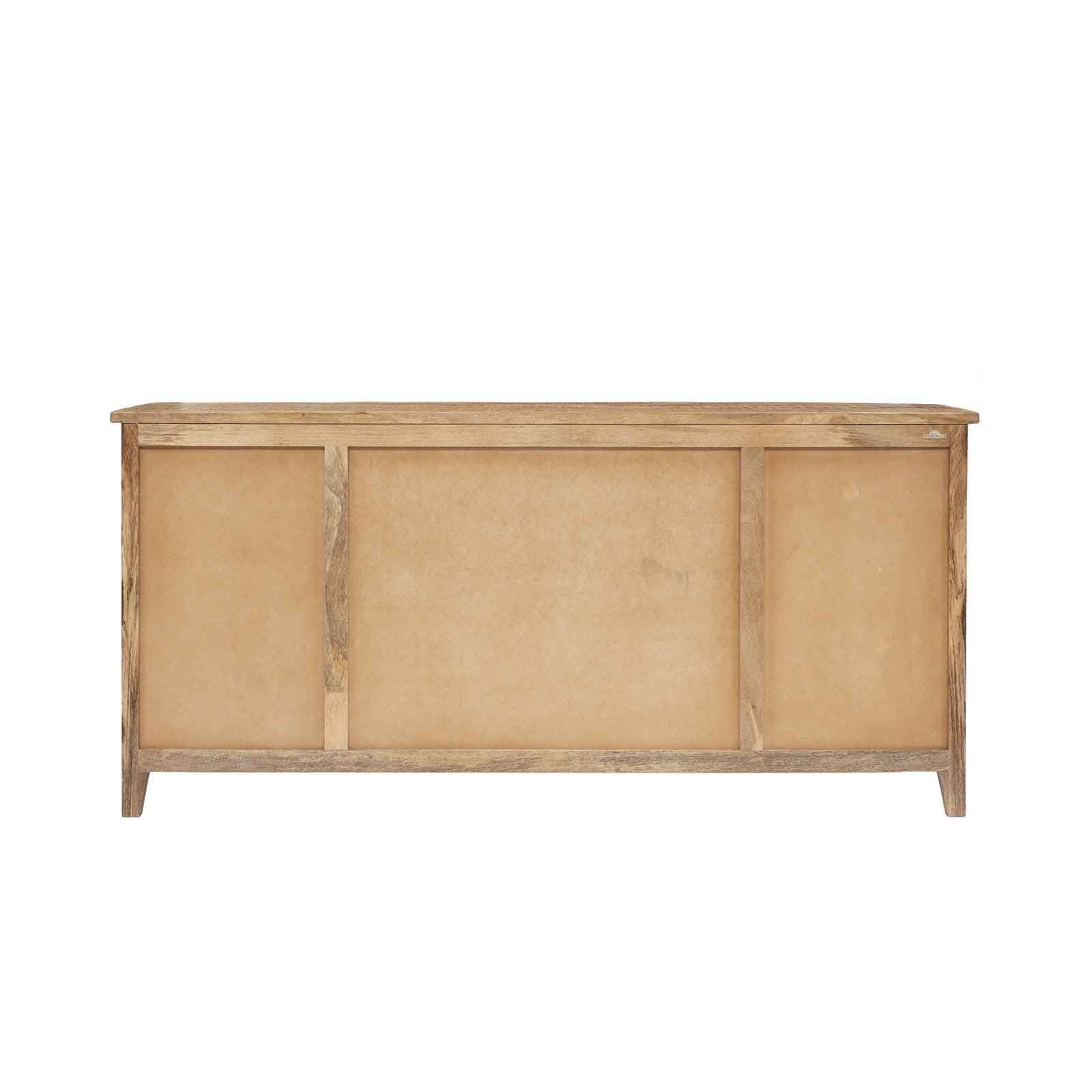 La finition nitrocellulosique appliquée avec soin assure une protection durable à la surface du buffet tout en préservant l'aspect naturel du bois de manguier. Chaque pièce est méticuleusement cirée à la main, ajoutant une patine subtile qui met en valeur les détails uniques du matériau. L'effet brut de sciage, soigneusement intégré dans la finition, confère au buffet une esthétique brute et authentique. Chaque strie et imperfection rappelle l'origine artisanale du bois, créant ainsi une pièce unique imprégnée d'une touche d'histoire et de caractère. Avec son design équilibré, ses matériaux de haute qualité et son ample capacité de rangement, le buffet bois brut de la collection Manguier Brut s'impose comme un meuble qui marie élégance et praticité dans votre espace de vie.