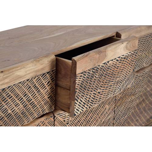 Beau buffet bois massif fait d'acacia et de métal. Sa façade unique sculptée à la main vous permettra de donner un style inimitable à votre intérieur