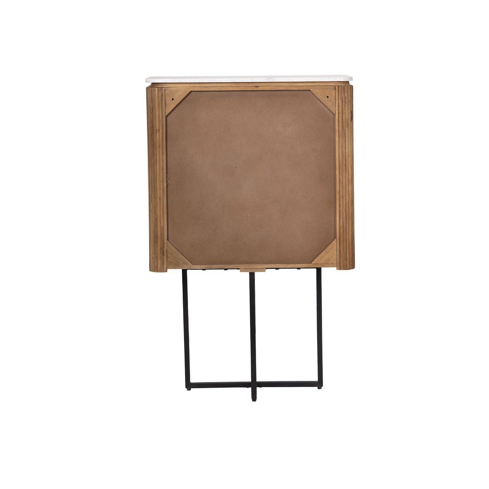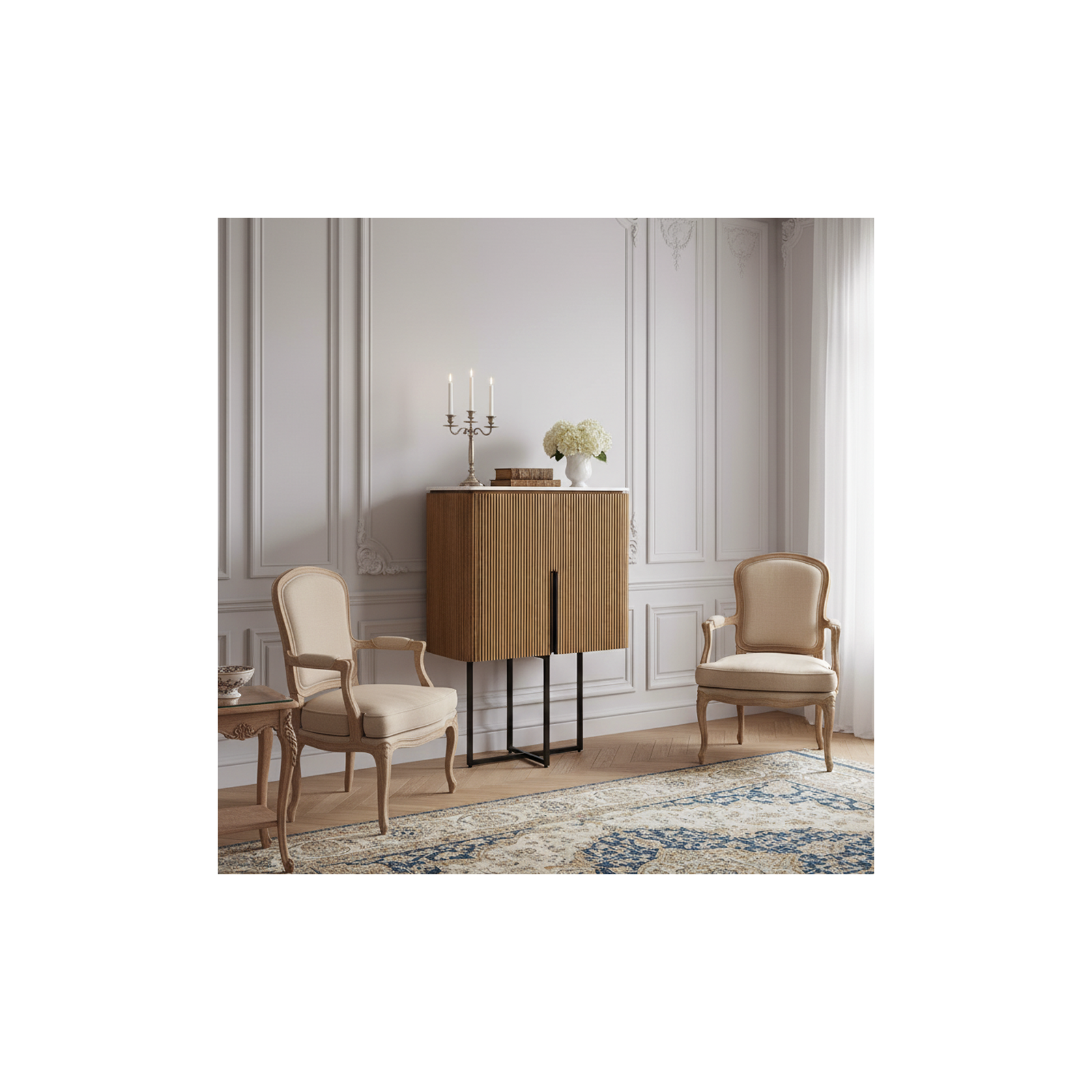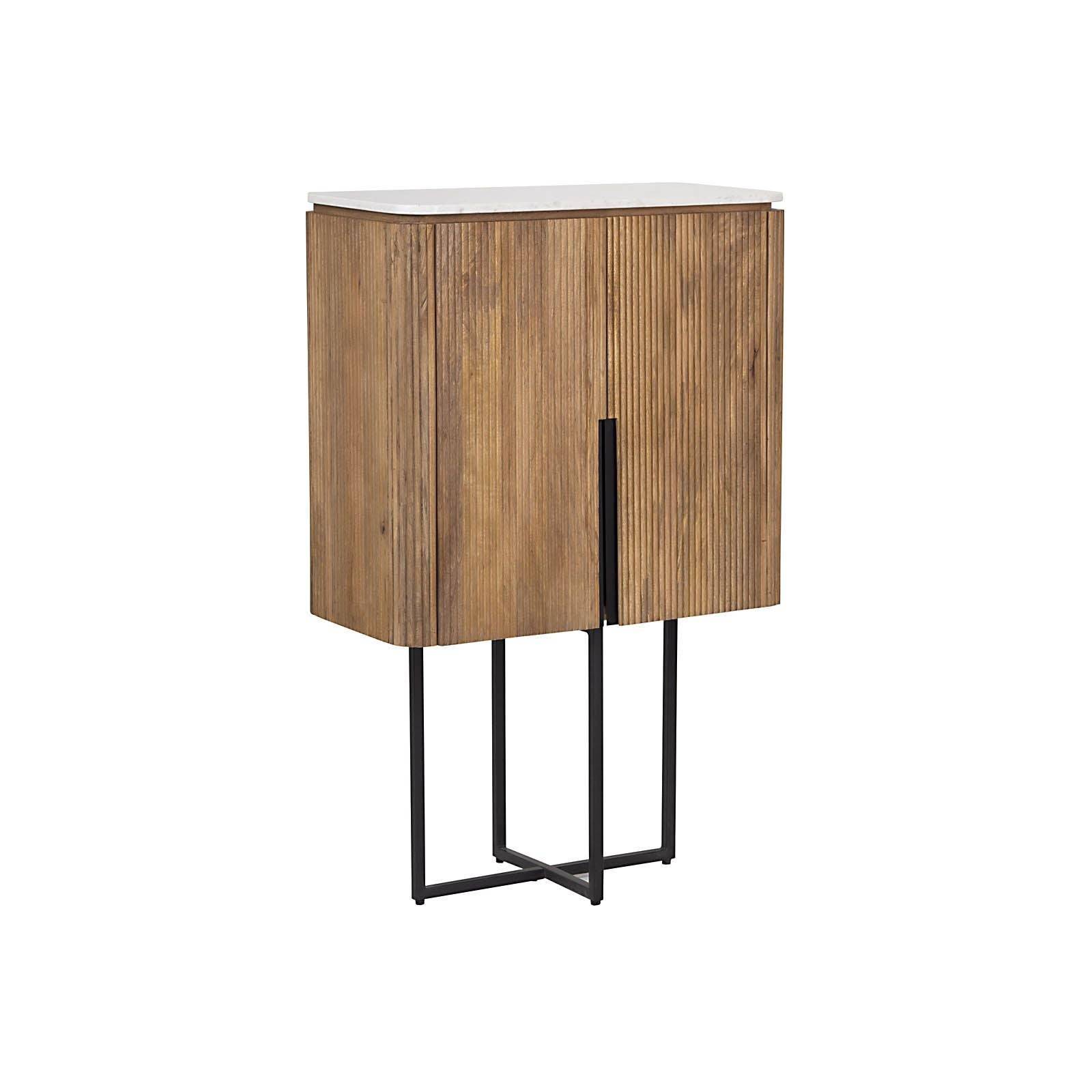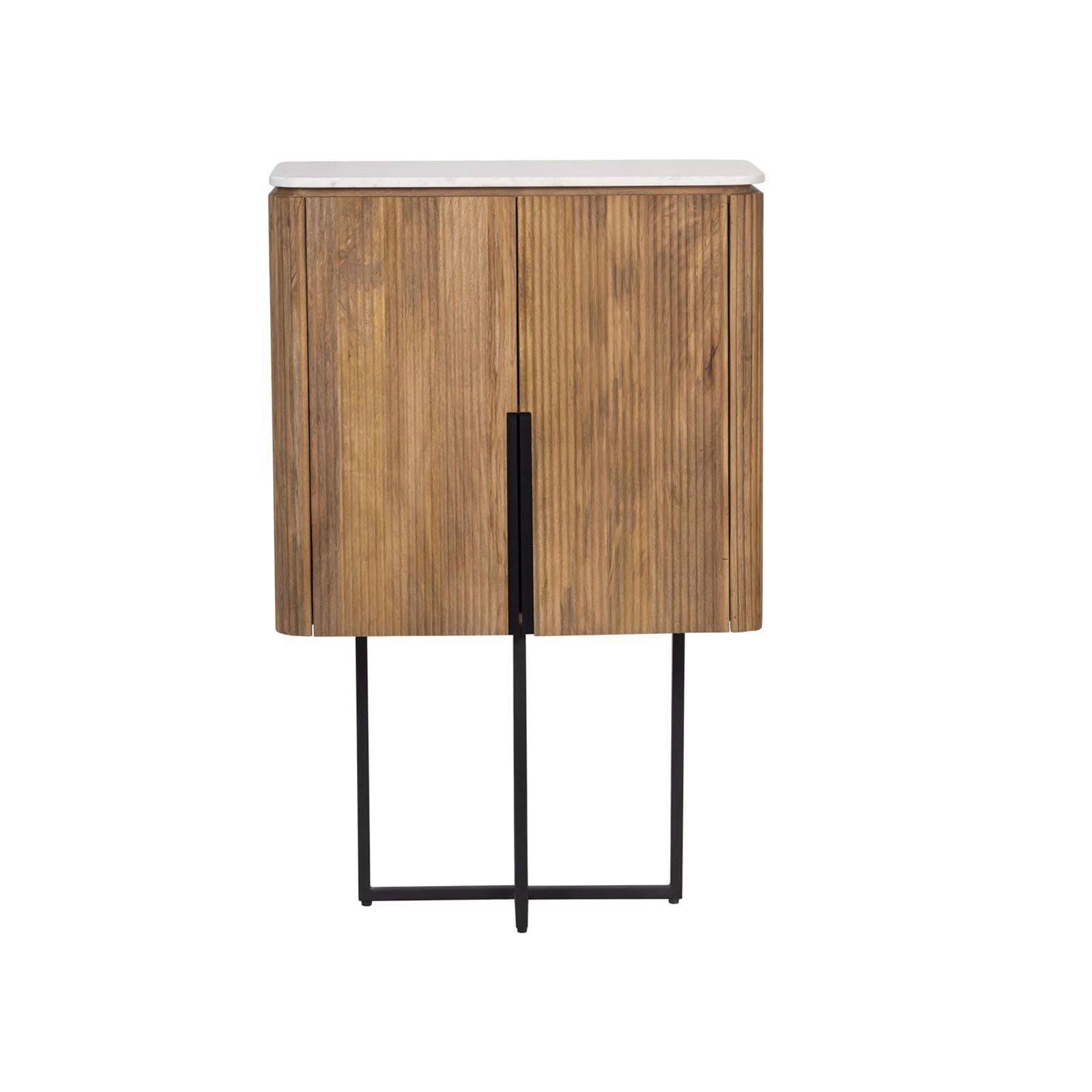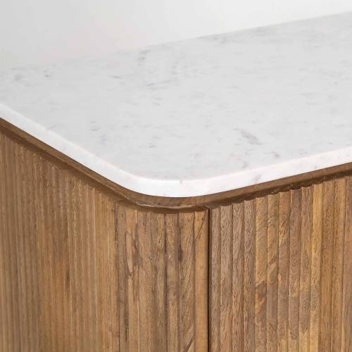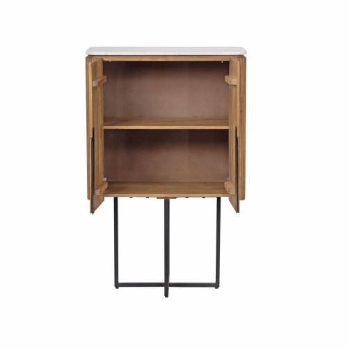Buffet haut à 2 portes avec plateau en marbre blanc - Un ajout élégant et fonctionnel à votre salon.