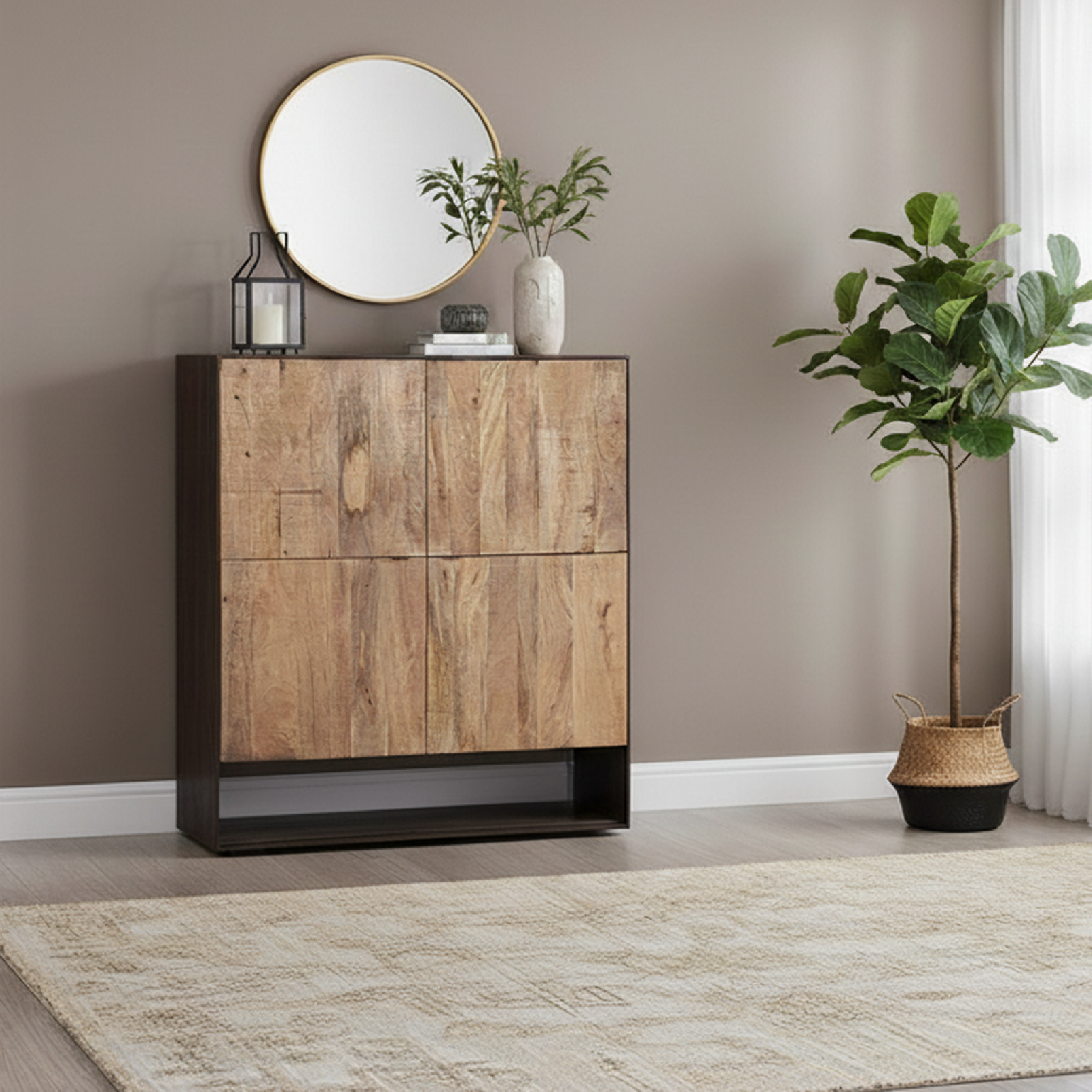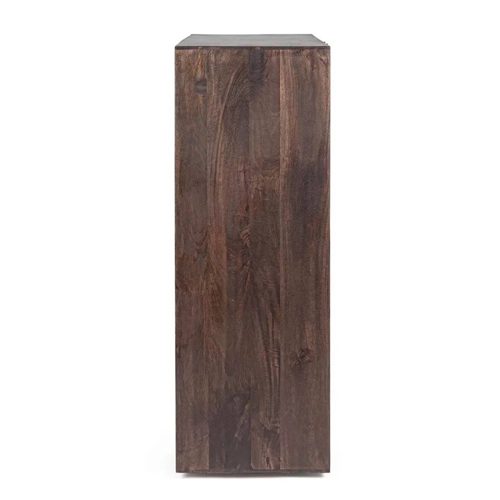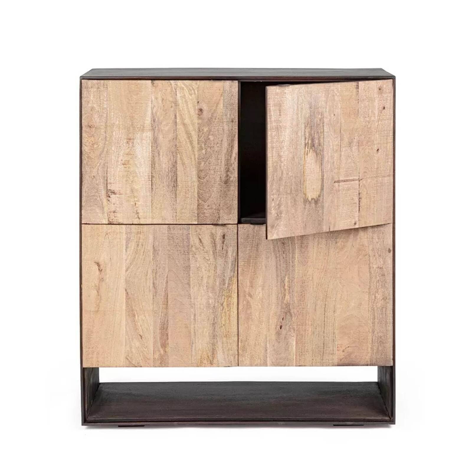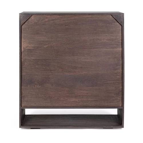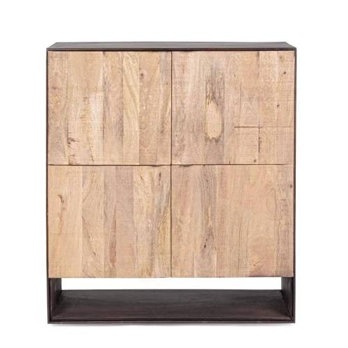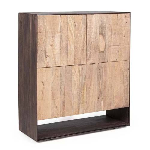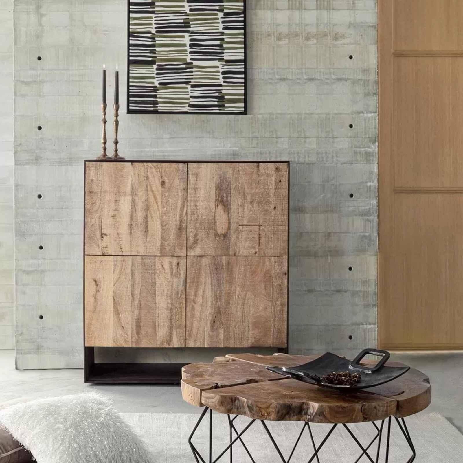 Explorez l'élégance moderne et l'artisanat authentique avec le buffet haut bicolore fabriqué à partir de bois de manguier massif et métal au design unique.
