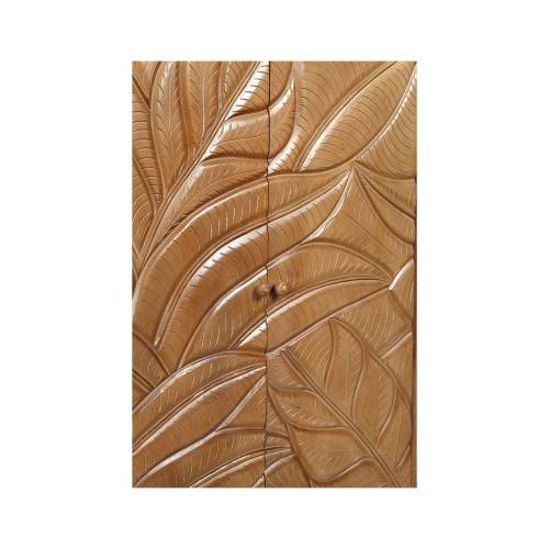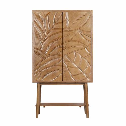 Le buffet haut sculpté 2 portes a un design artisanal et fonctionnel et ajoute une touche de charme naturel et un espace de rangement pratique à votre maison.