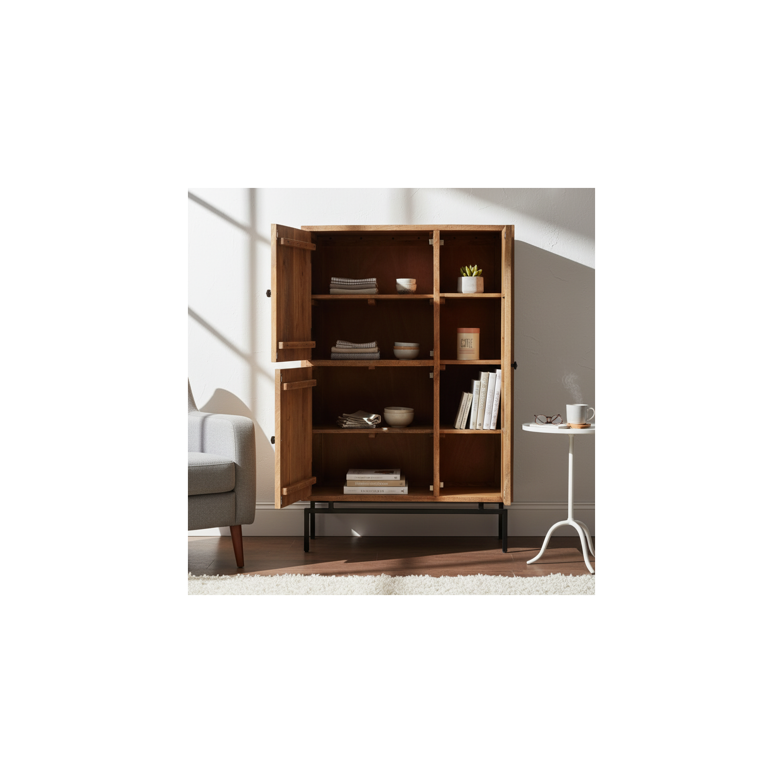 Les pieds en métal à la finition noir mat, ajoutent une touche de modernité tout en assurant une stabilité durable. La combinaison de matériaux de haute qualité et de détails artisanaux fait de ce buffet un véritable chef-d'œuvre de design intérieur, ajoutant une touche de caractère et d'élégance à votre maison. Que ce soit dans votre salle à manger, votre salon ou votre cuisine, le buffet haut sculpté 3 portes de la collection Manguier Borealis allie fonctionnalité et esthétique avec raffinement. Avec son design et ses détails exquis, ce buffet ajoutera une dimension de sophistication et de style à votre décoration intérieure.
