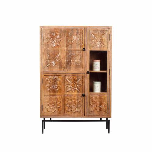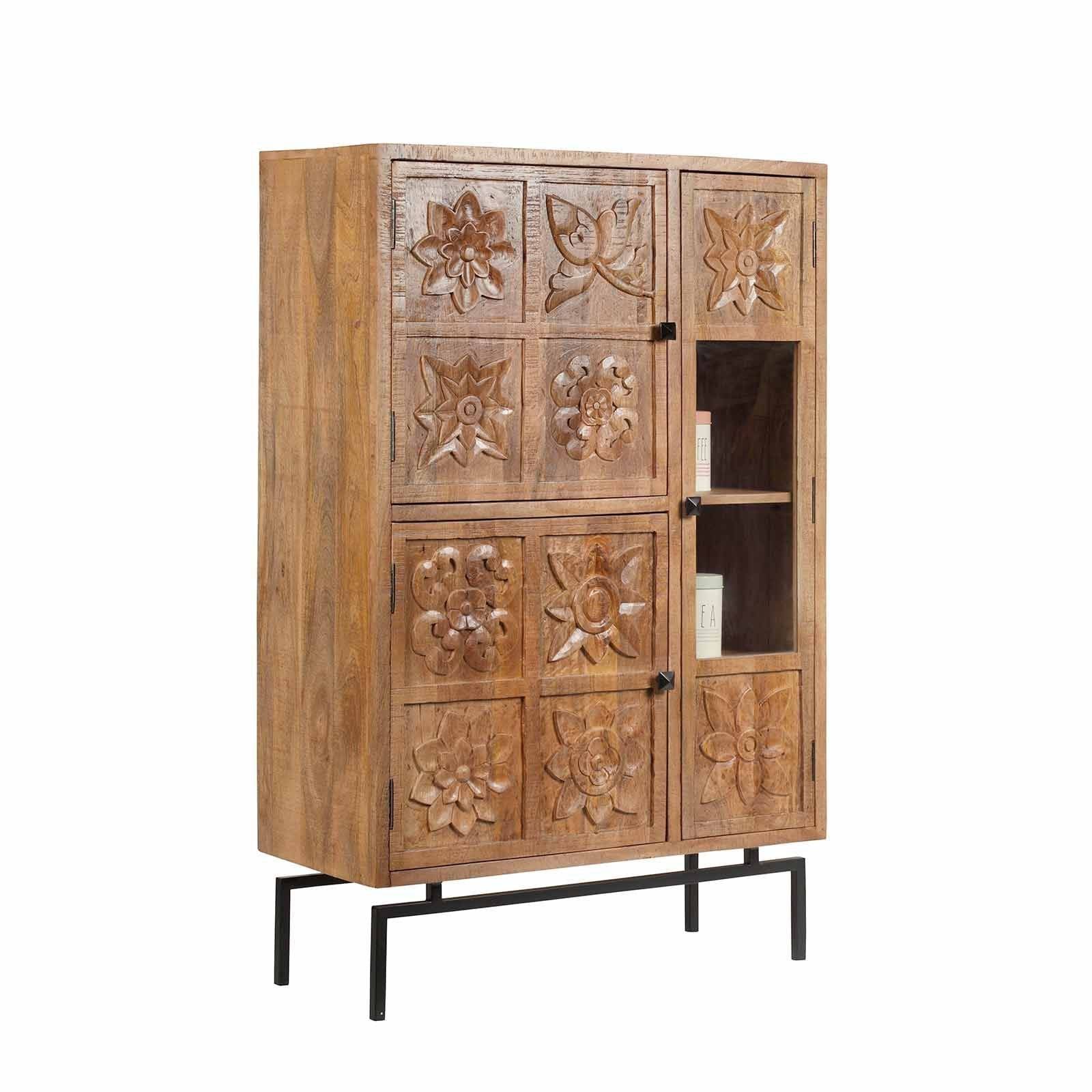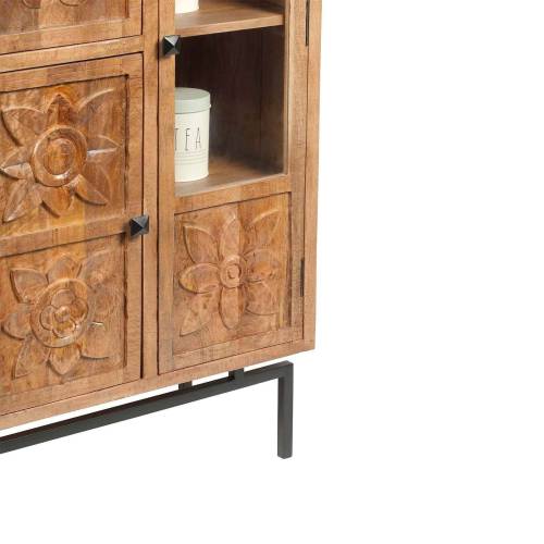 Découvrez l'élégance sophistiquée et l'artisanat méticuleux avec le buffet haut sculpté 3 portes en manguier massif, MDF et métal.