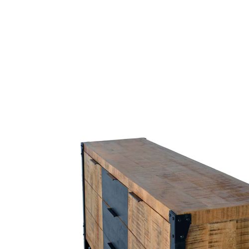 Les pieds en métal de ce buffet ajoutent une touche industrielle moderne au design global du meuble. Le contraste entre le bois chaleureux du manguier et le métal noir confère à ce buffet un style contemporain et chic qui s'intègre parfaitement aux intérieurs modernes et tendance. Son design bicolore et ses pieds en métal en font un meuble moderne et esthétique qui s'adaptera parfaitement à votre décoration intérieure. Faites de votre espace de vie un lieu où le charme du bois de manguier se marie harmonieusement avec la modernité du métal, pour une expérience visuelle unique et inspirante. Avec ce buffet manguier 2 portes de la collection Mix & Match, votre intérieur deviendra un espace à la fois accueillant et moderne, où chaque détail est une invitation à la découverte et à l'harmonie.