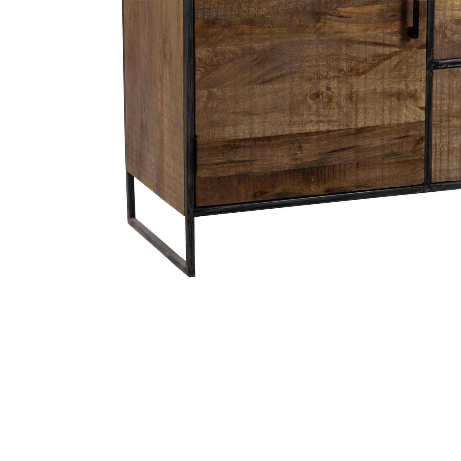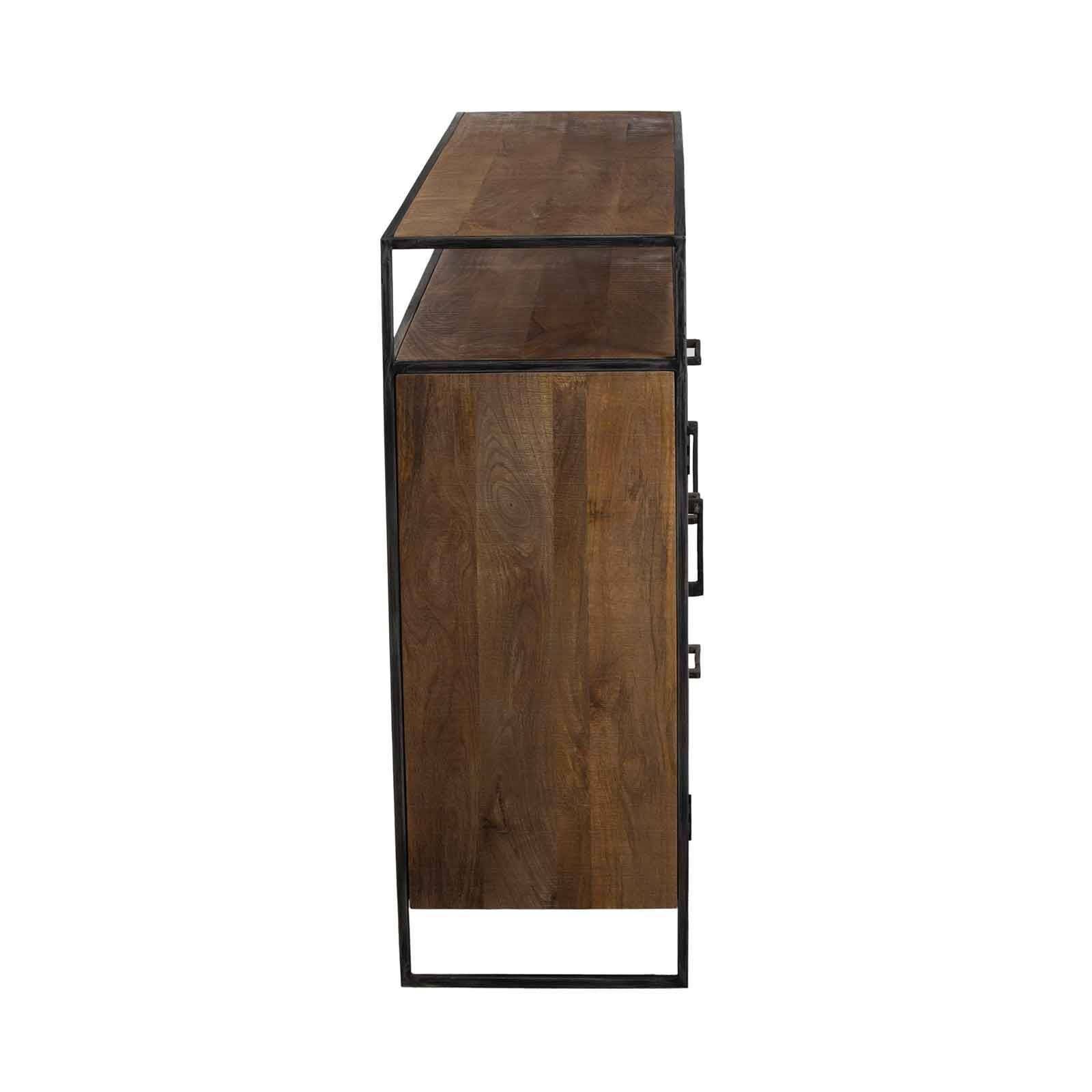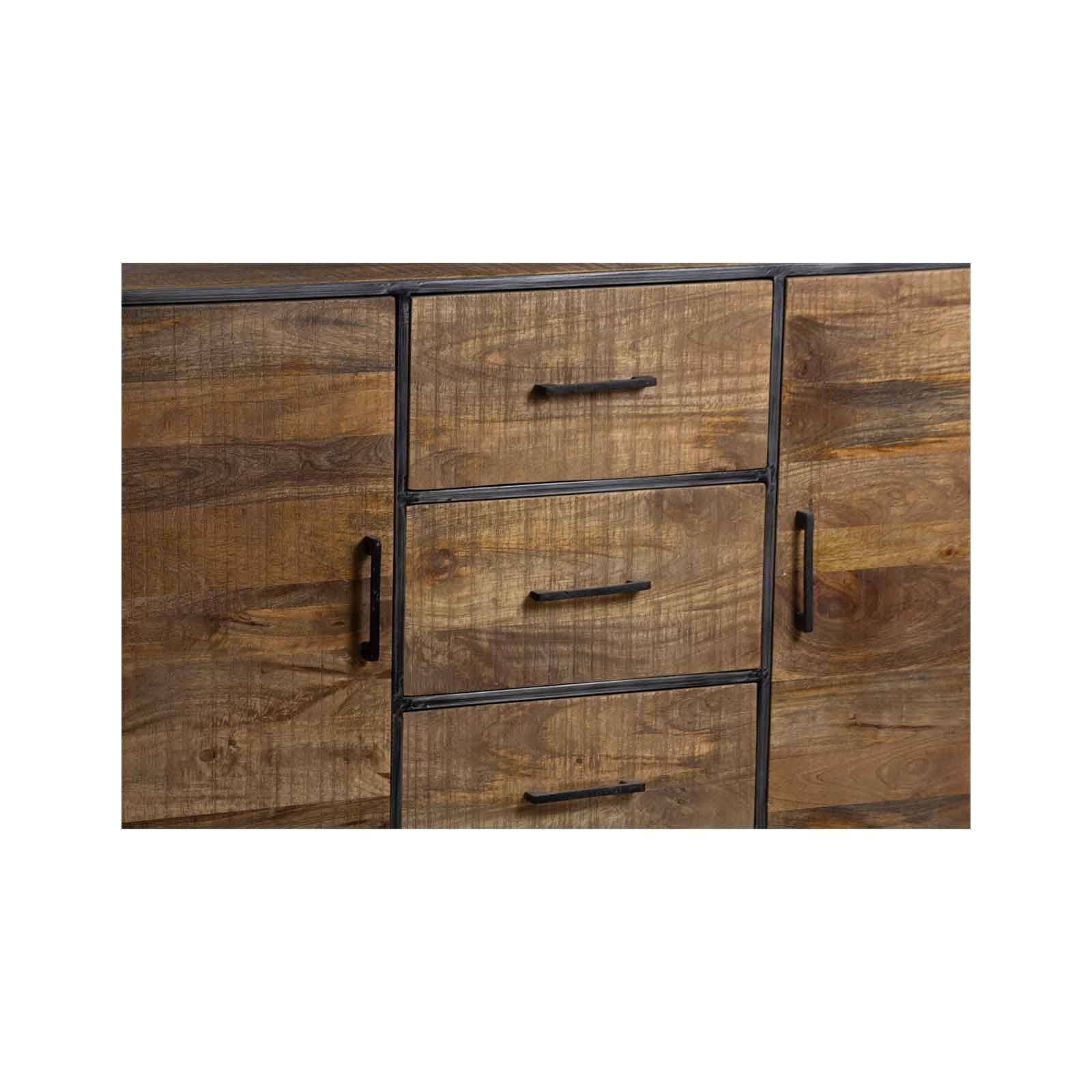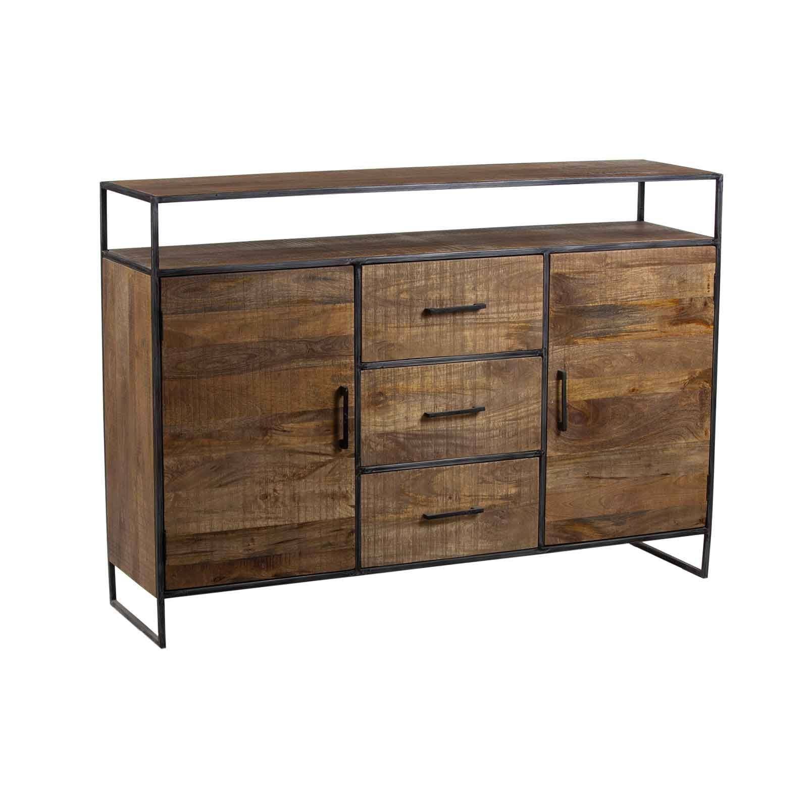 Le buffet manguier et métal marrie parfaitement la fonctionnalité contemporaine et le style industriel audacieux avec ses 2 portes et 3 tiroirs.
