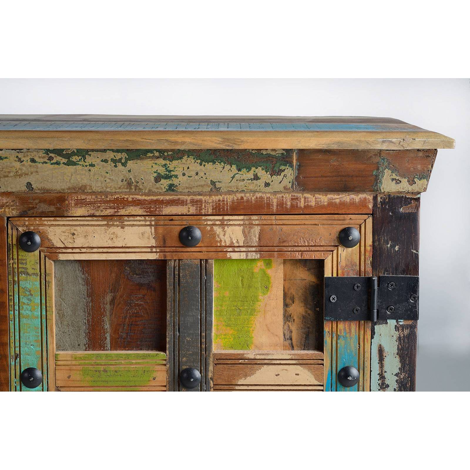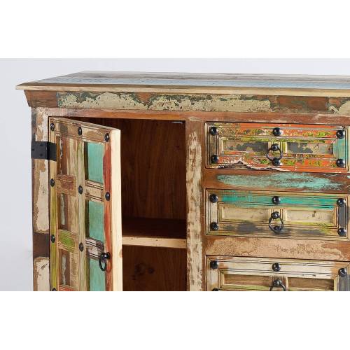 Découvrez le buffet salon bois massif en bois recyclé pour donner un style unique à votre séjour. Un meuble déco tendance et un bel espace de rangement.
