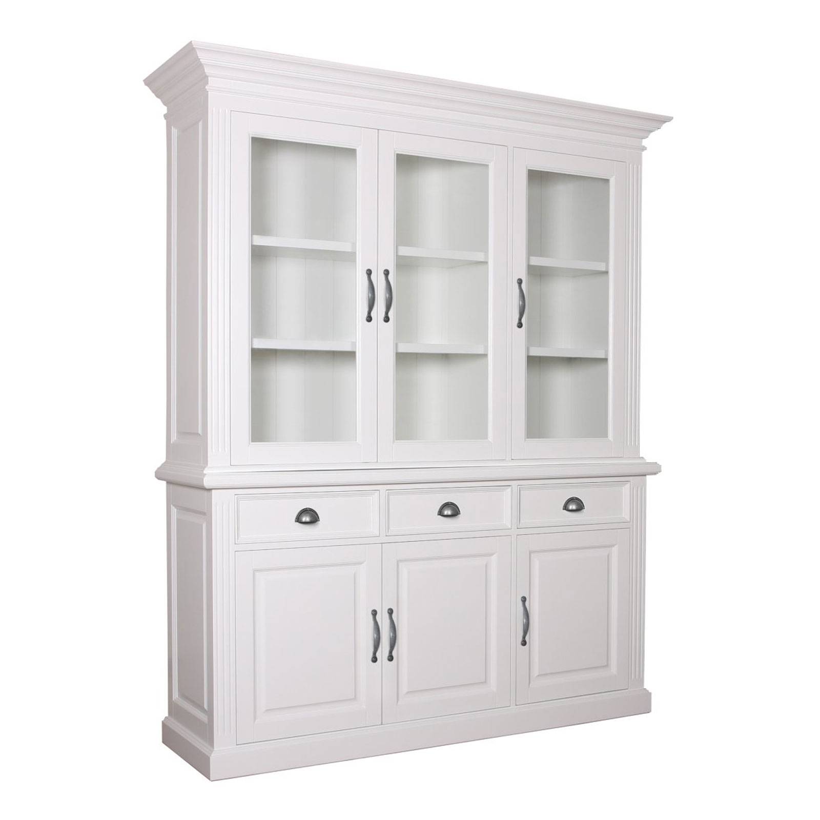 Superbe vaisselier en bois de pin de style classique dont la couleur blanche, résolument romantique, charme d'entrée de jeu. Doté de nombreux espaces de rangements, ce meuble deviendra vite un "must have".