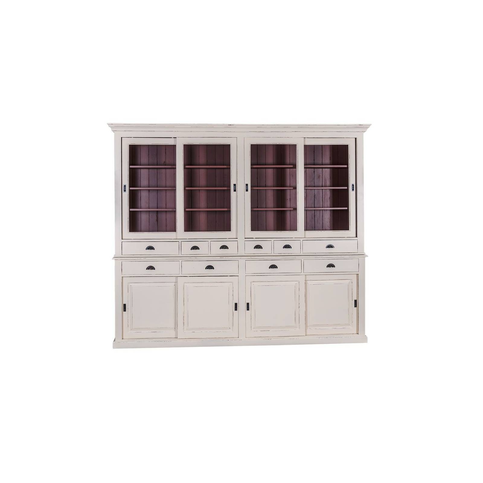 Cet immense buffet vaissellier est composé de deux parties qui se répondent dans un jeu de symétrie. Chacune de ses parties comporte deux portes pleines à leur base, cinq tiroirs de tailles différentes et deux portes vitrées dans leur partie supérieure. Avec tout cela, vous pourrez ranger l'ingralité de votre vaisselle ! Vous pourrez même installer quelques bilbelots et autres objets de décoration sur les étagères supérieures.