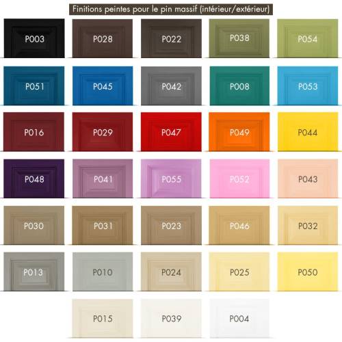 Nous vous remercions de préciser la référence couleur des finitions choisies en commentaire lors du passage de votre commande. Exemple visible sur la photo : extérieur P039 / intérieur P016.