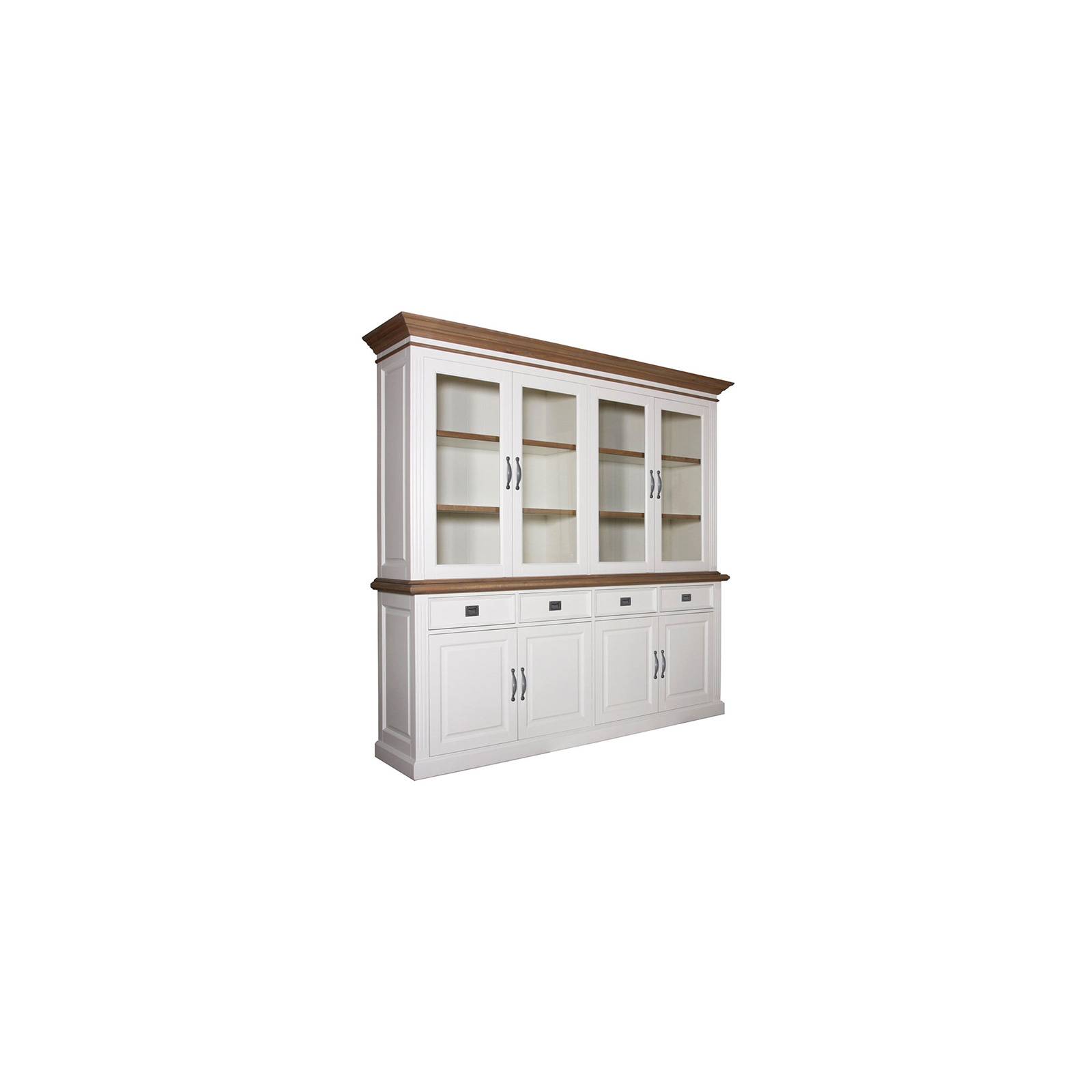 Pièce maîtresse de votre salle à manger, ce grand buffet vaisselier vous offrira des espaces de rangement et de décoration uniques. Vous serez conquis par la partie supérieure qui vous propose trois niveaux d'exposition derrière ses quatre portes vitrées. Objets et bibelots, cadre photo, livres et assiettes raffinées se côtoient et donnent le ton à la déco de votre pièce. Au-dessous, vous trouverez la place nécessaire au rangement de votre vaisselle, de vos couverts et de votre linge de maison. Amateur du style chic et romantique, préservez le blanc et le chêne naturel, sans oublier la finition antique et les poignées en bronze. Habillez l'intérieur d'une troisième teinte et donnez de la profondeur à votre décoration.