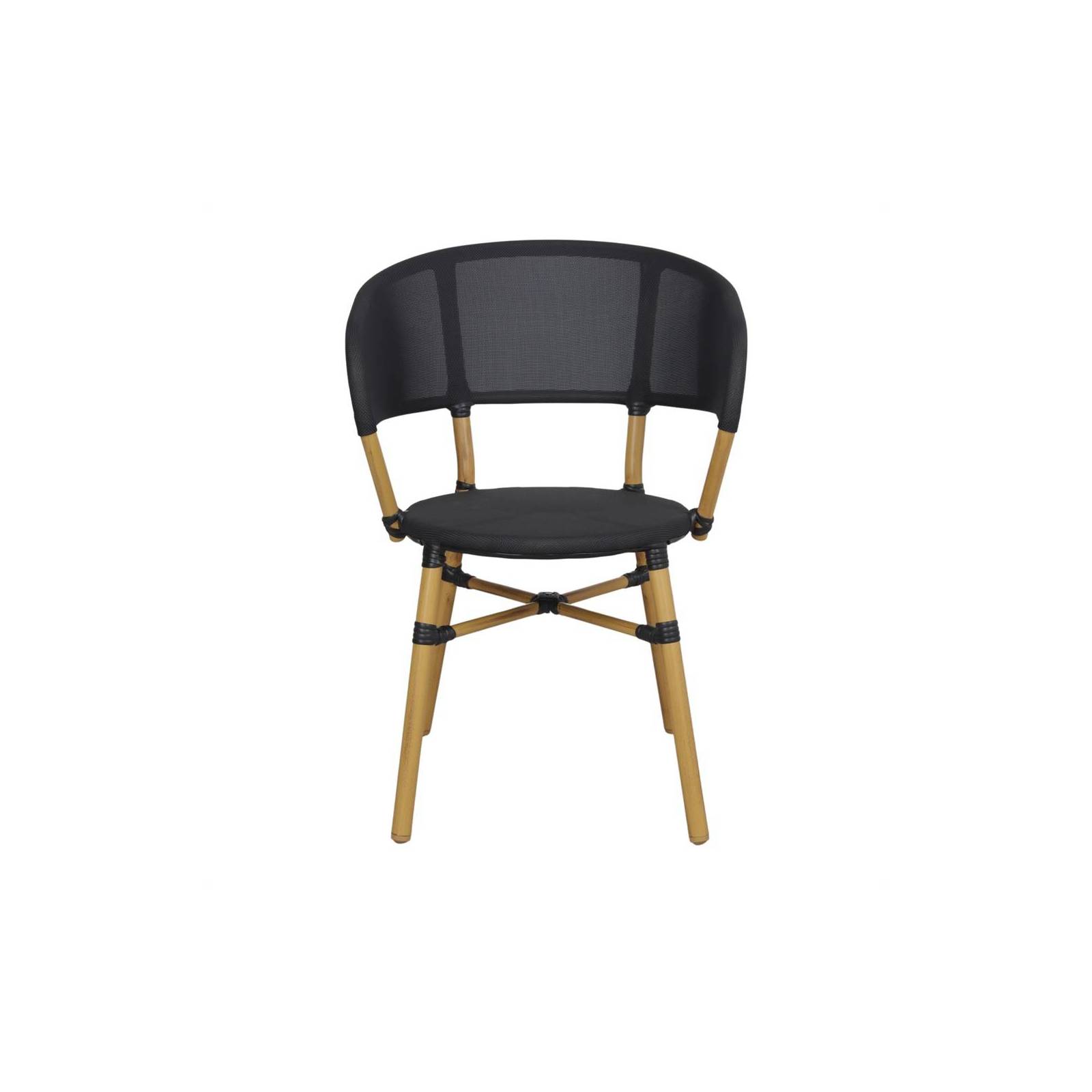 Agrémentée d'une finition imitation bambou, cette chaise offre légèreté et durabilité, créant une esthétique naturelle et sophistiquée. L'assise et le dossier en textilène noir ajoutent une touche moderne à la chaise Arhiza tout en assurant un confort optimal. Conçue pour résister aux intempéries, cette chaise est idéale pour embellir votre terrasse, jardin ou espace en plein air avec son allure intemporelle.