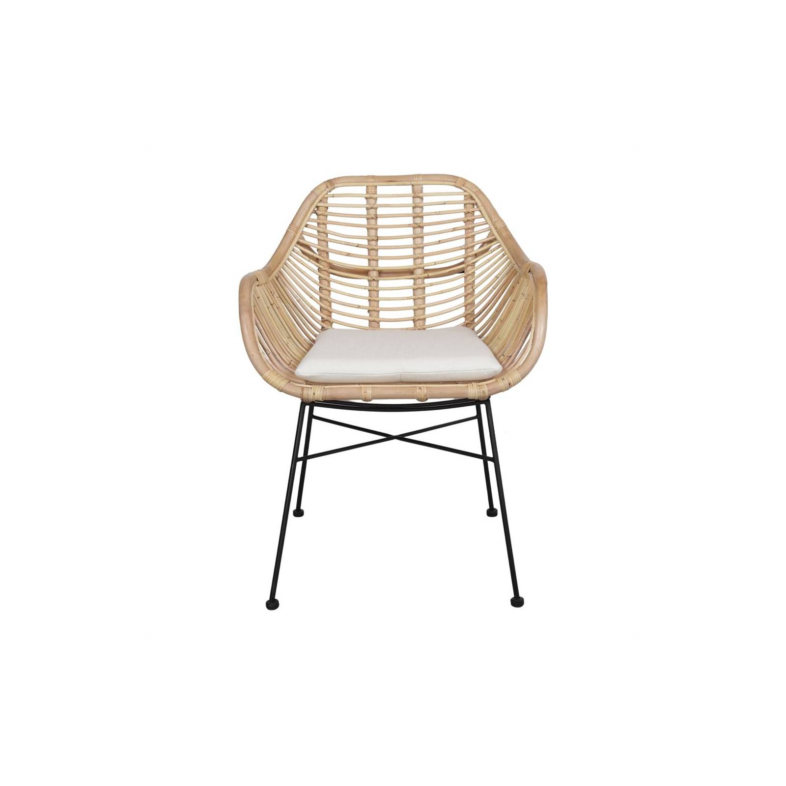 Les accoudoirs intégrés, ajoutent une touche de confort supplémentaire, parfaite pour se détendre. L'assise, réalisée en rotin naturel, apporte une esthétique chaleureuse et authentique, évoquant l'atmosphère ensoleillée des régions méditerranéennes. Le coussin assorti offre un confort supplémentaire tout en complétant le design naturel de la chaise.