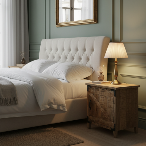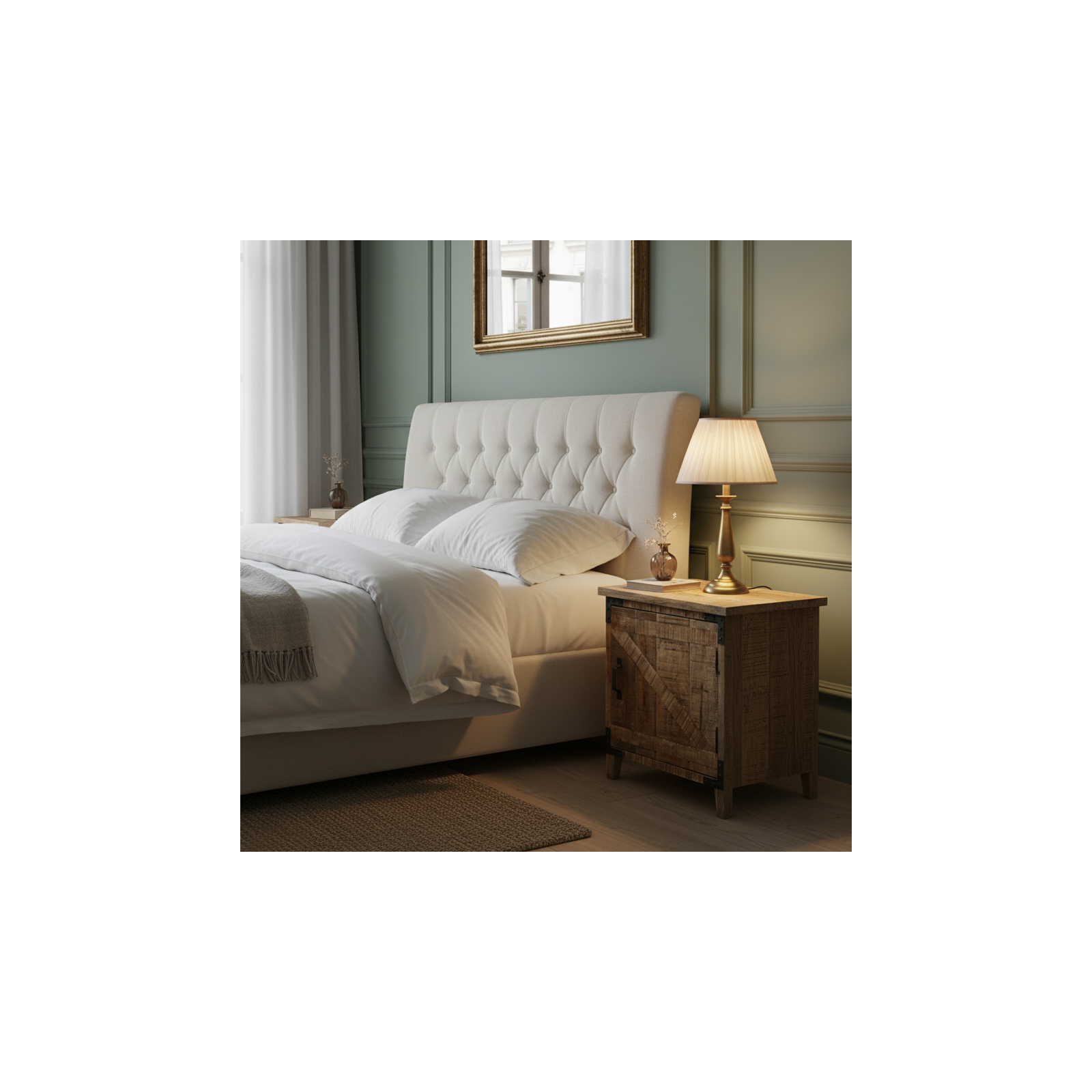 Le chevet dispose d'une porte à ouverture gauche, offrant un espace de rangement pratique pour vos objets personnels. La possibilité de choisir entre une ouverture gauche ou droite permet une personnalisation adaptée à votre aménagement. L'effet brut de sciage, délibérément incorporé dans le design, confère au chevet une esthétique brute et authentique. Chaque rainure et aspérité rappelle l'origine artisanale du bois, créant ainsi une pièce unique qui raconte une histoire à travers ses détails. Avec son design équilibré, ses matériaux de qualité et ses finitions soignées, le chevet gauche de la collection Manguier Brut est une pièce maîtresse qui allie style et praticité dans votre espace de repos, créant une atmosphère accueillante et élégante.