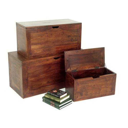 Lire l'avis Ce set de trois coffres gigogne en bois Zen a tout pour plaire ! Chaque coffre fut fabriqué à partir d'un bois exotique, du palissandre massif.