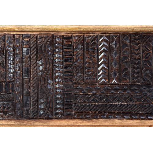 Les motifs exotiques sculptés à la main sur le coffre de rangement apportent une touche tendance et captivante. Que ce soit des motifs floraux, des symboles culturels ou des représentations abstraites, ces motifs exotiques reflètent les influences culturelles contemporaines, ajoutant une esthétique unique et actuelle au meuble. Chaque détail sculpté est réalisé avec précision, témoignant de l'attention portée aux finitions. En plus de son aspect visuel remarquable, ce coffre de rangement offre une fonctionnalité pratique. Il vous permet de ranger une variété d'articles, des couvertures et oreillers aux jouets et objets personnels. Le coffre vous aide à garder votre espace organisé tout en ajoutant une touche décorative à votre intérieur. Le coffre de rangement de la collection Trésor est bien plus qu'un simple meuble de rangement, c'est une pièce maîtresse qui ajoute une dimension artistique et tendance à votre espace.
