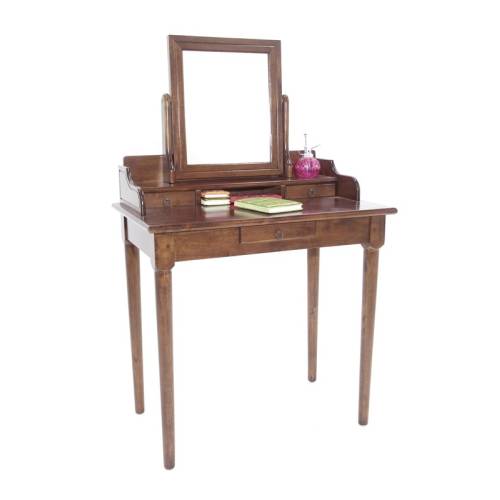 Ravissante coiffeuse en bois fille qui ne manque pas de charme avec son design classique qui évoque le mobilier d'antan. Elle conviendra tout à fait à une chambre à coucher accompagnée d'une décoration vintage pour un ensemble rétro qui ne manquera pas d'élégance. Fonctionnelle, elle présente non seulement un miroir pour vous maquiller et coiffer ainsi que trois petits tiroirs dans lesquels pourrez ranger votre maquillage et vos produits de beauté. Cette belle coiffeuse en bois fille est composée d'hévéa massif, un bois exotique d'une excellente qualité.
