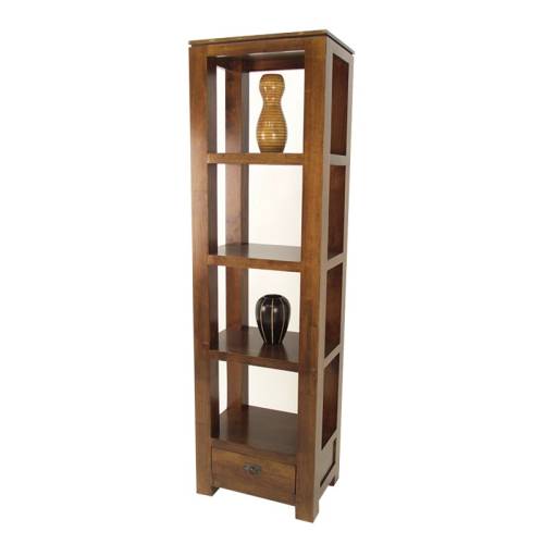 Les formes massives de cette belle colonne étagère en bois exotique lui donnent une certaine force mâtinée d'une élégance incomparable. Un aspect moderne se dégage de cette colonne étagère, qui pourra néanmoins s'accorder avec d'autres styles de mobilier comme le style colonial, les meubles de type classique ou encore typés ethniques.
