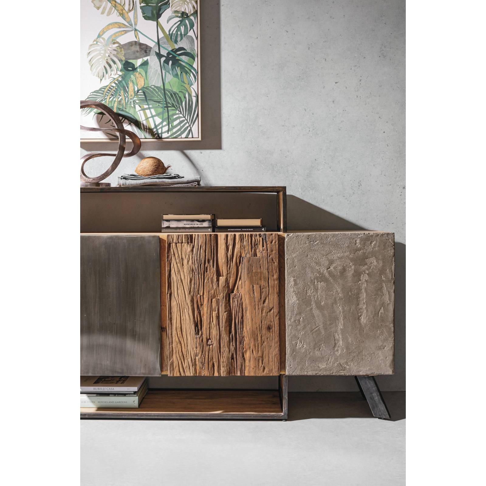 La commode 3 portes de la collection Manchester est un meuble fonctionnel. Sa structure en bois de manguier et en acier, lui confère une élégance intemporelle.