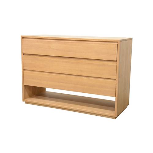 Élégante et fonctionnelle, cette commode 3 tiroirs s'installera tout naturellement dans une chambre et donnera le ton à une décoration douce et cosy. Équipée de trois tiroirs et d'une niche, dédiée aux rangements des chaussures, elle vous apportera un réel confort d'organisation de vos vêtements. Fidèle à la conception du mobilier nordique, son design offre une esthétique rigoureusement épurée, comme en témoigne l'évidemment des tiroirs, préféré aux poignées, alors inexistantes. Pour accompagner cette commode 3 tiroirs et parfaire l'ambiance scandinave, découvrez les lits et les chevets proposés dans la même collection.