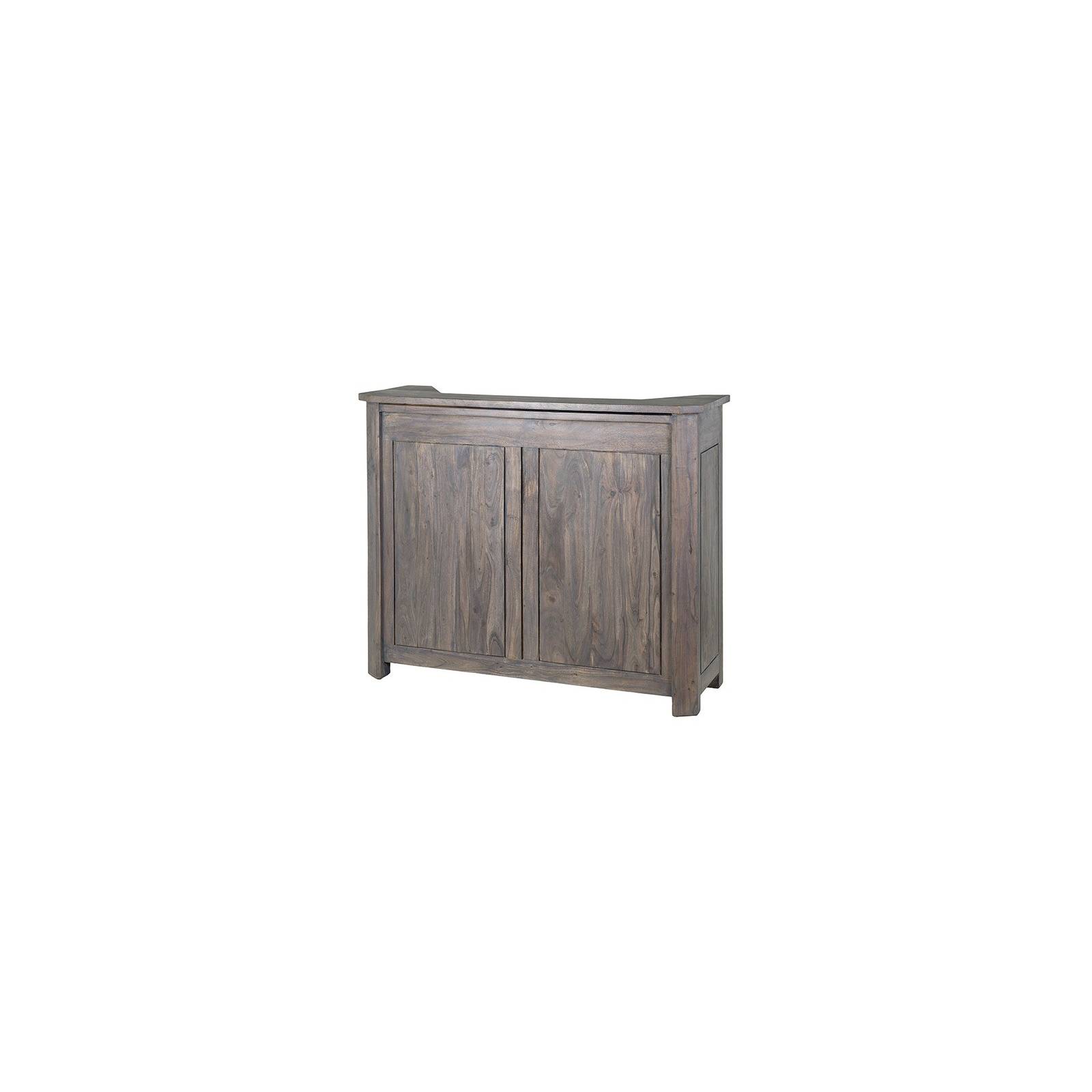 Ce ravissant meuble bar comporte un espace comptoir pour servir vos cocktails. Vous apprécierez son style moderne et son bois exotique grisé.
