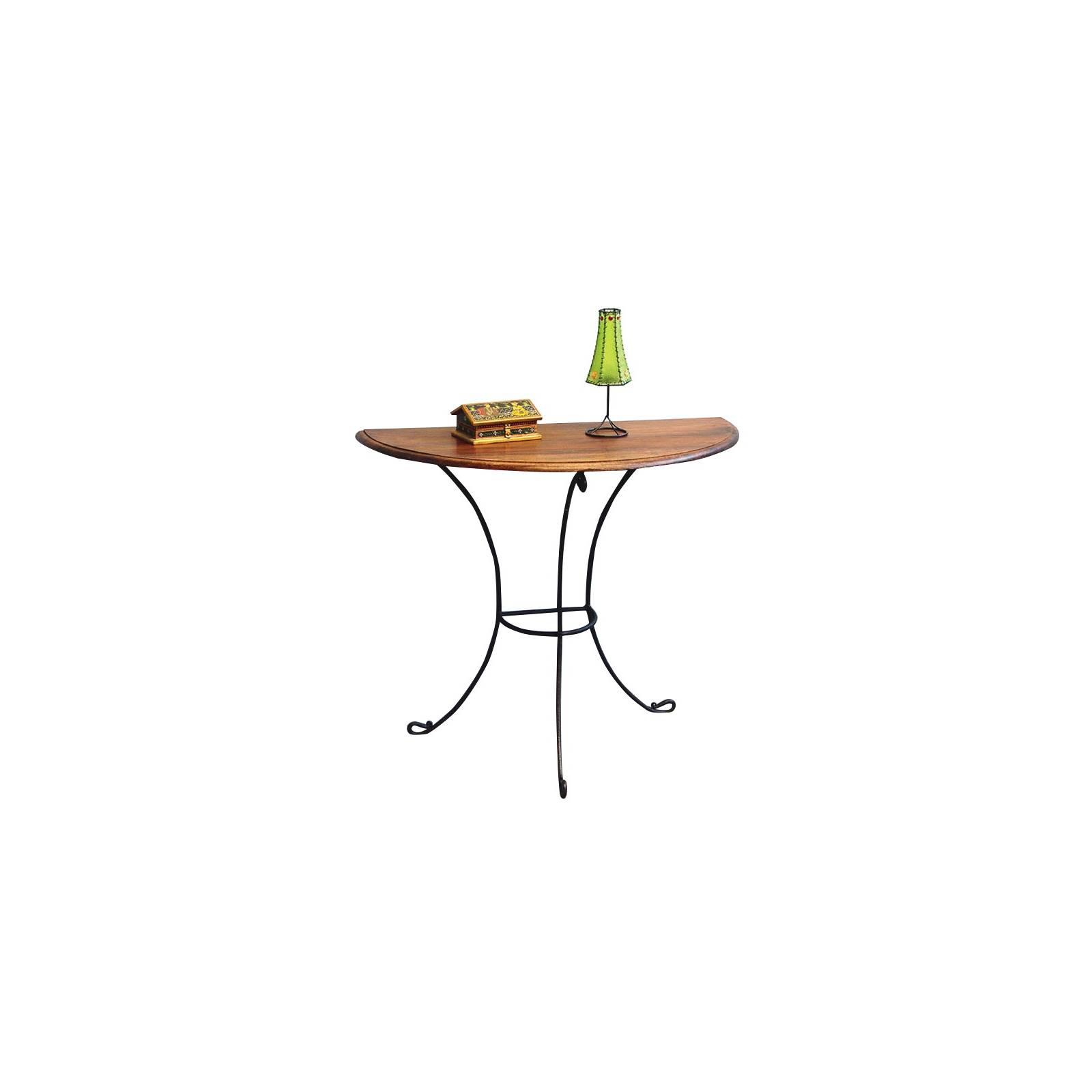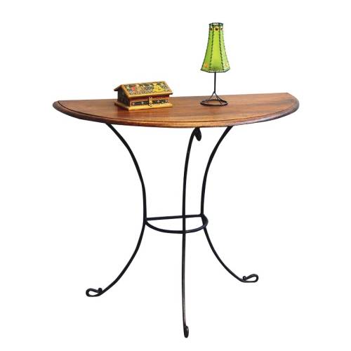 Cette belle console en fer forgé est idéale pour les petits espaces du fait de sa taille réduite, de plus, son design est original puisqu'il s'agit d'un demi-ovale soutenu par trois pieds, à placer contre un mur. Elle donnera du charme à votre intérieur rien que par sa présence !