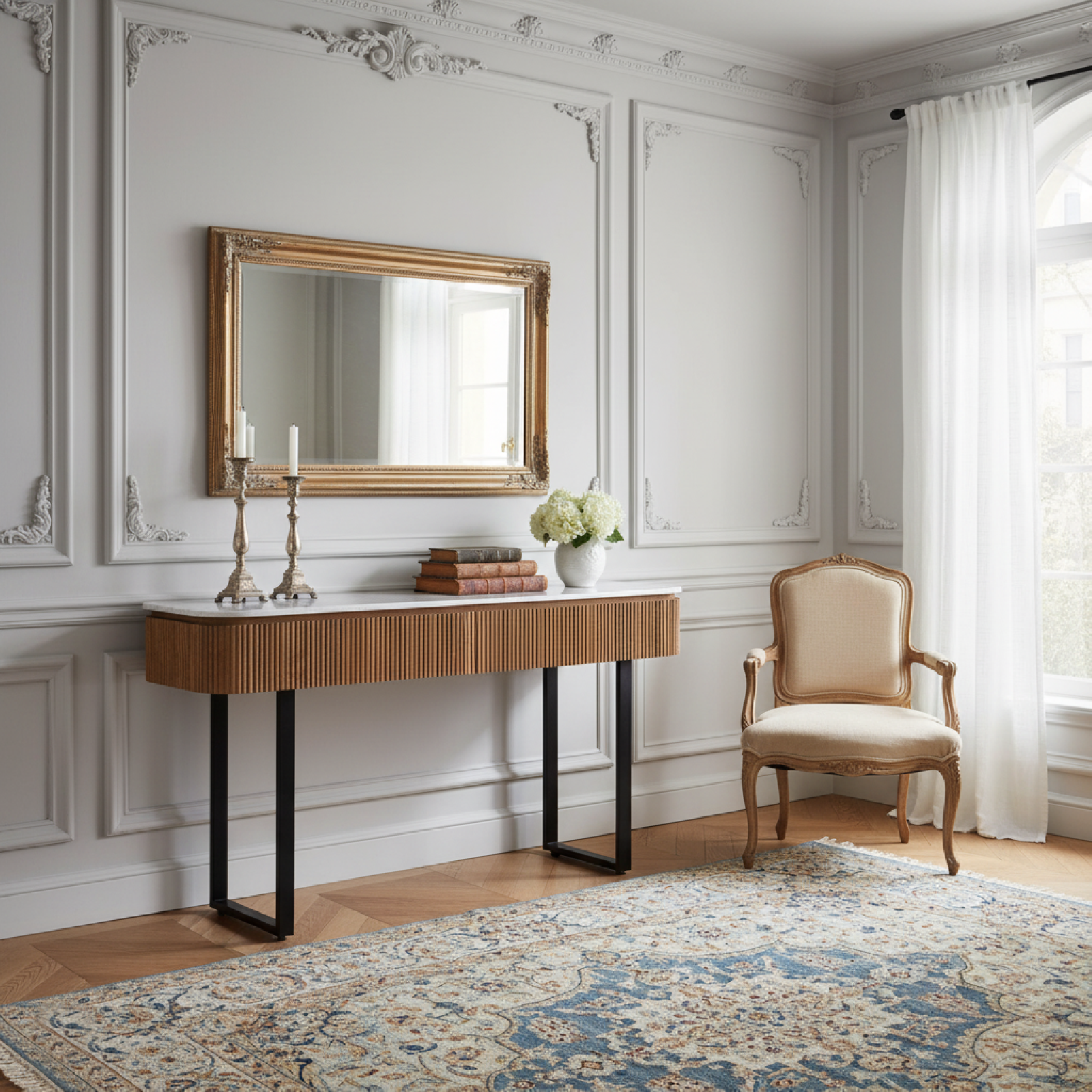 Console avec 2 tiroirs et plateau en marbre blanc - Un ajout élégant et fonctionnel à votre salon.